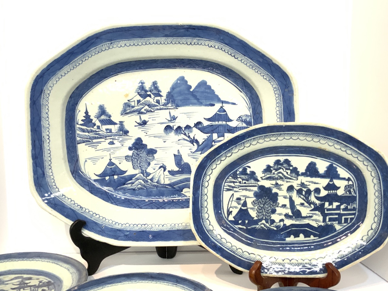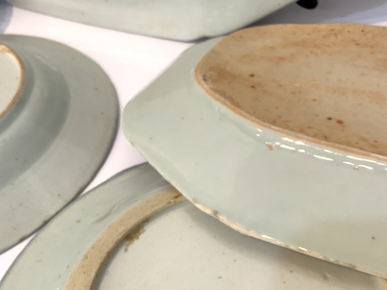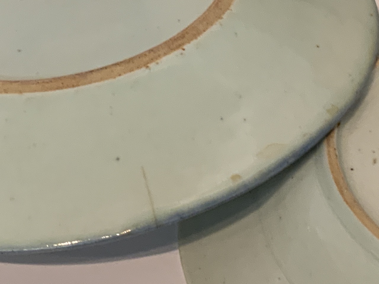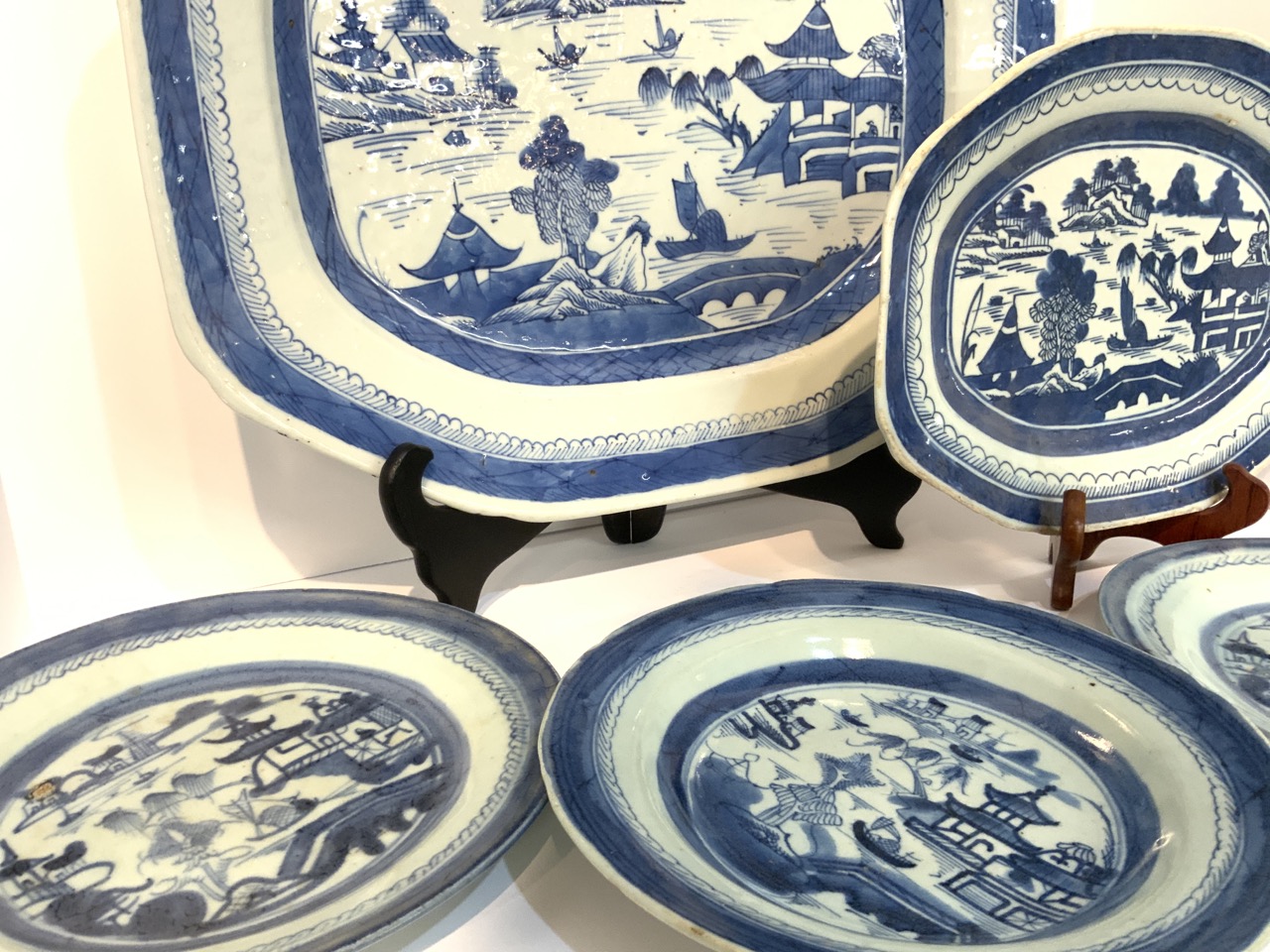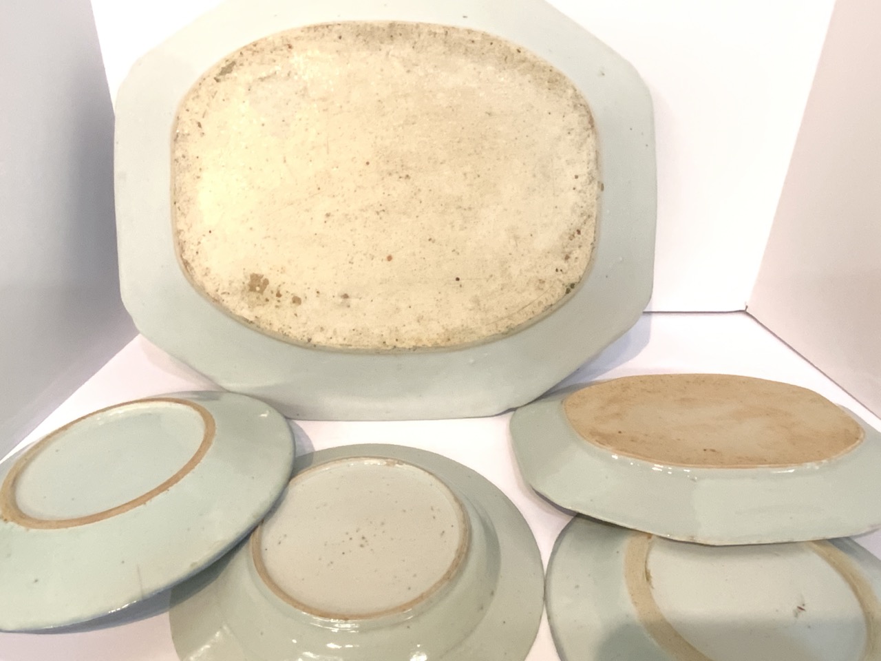 Five (5) Piece Chinese Canton porcelain. One small plate has hairline.