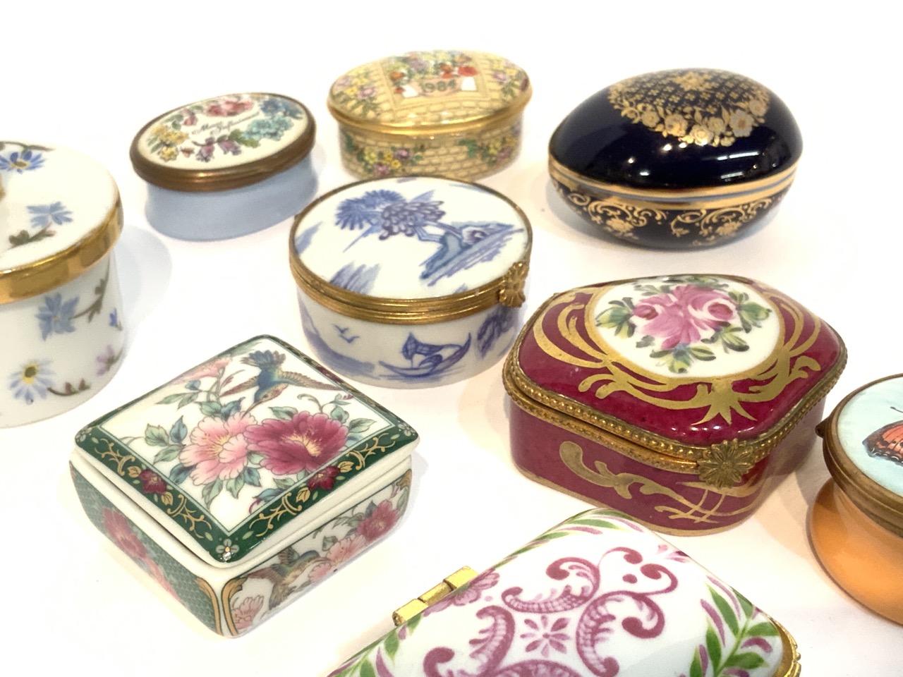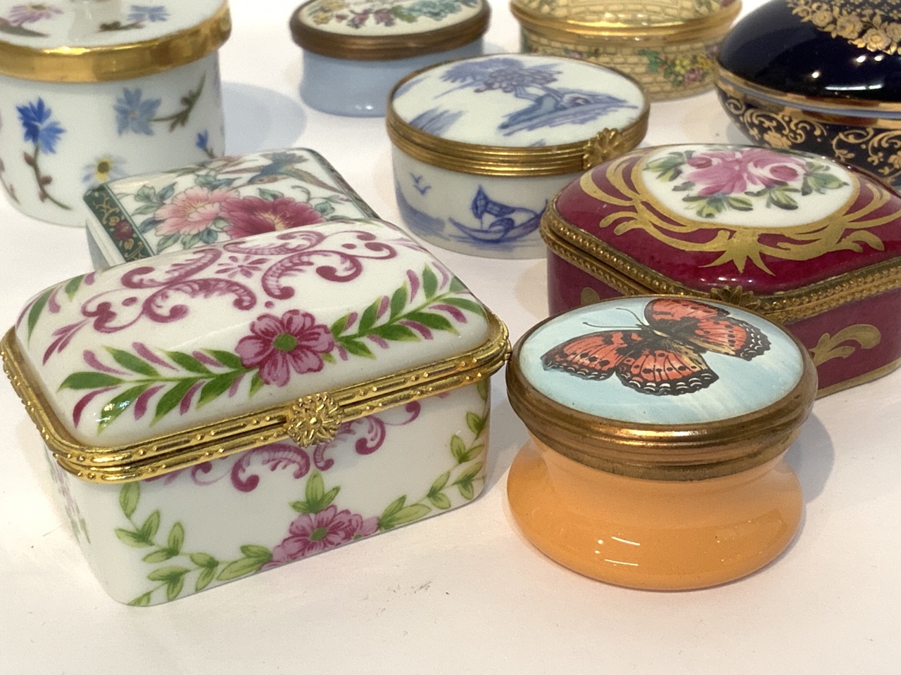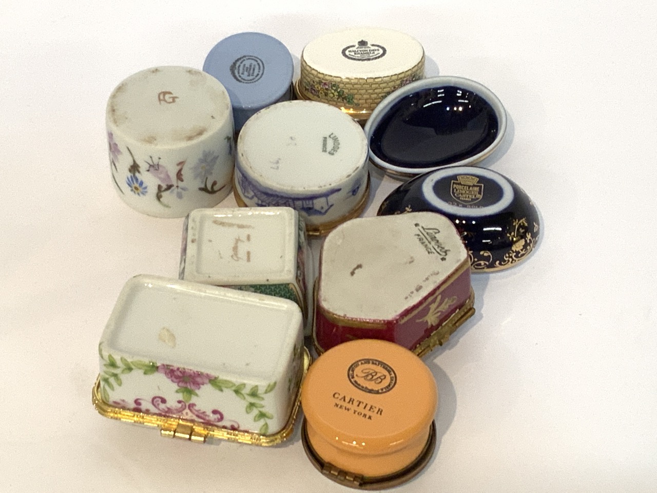 Collection of assorted enamel trinket boxes including Cartier New York, Halycon Days, Limoges etc.