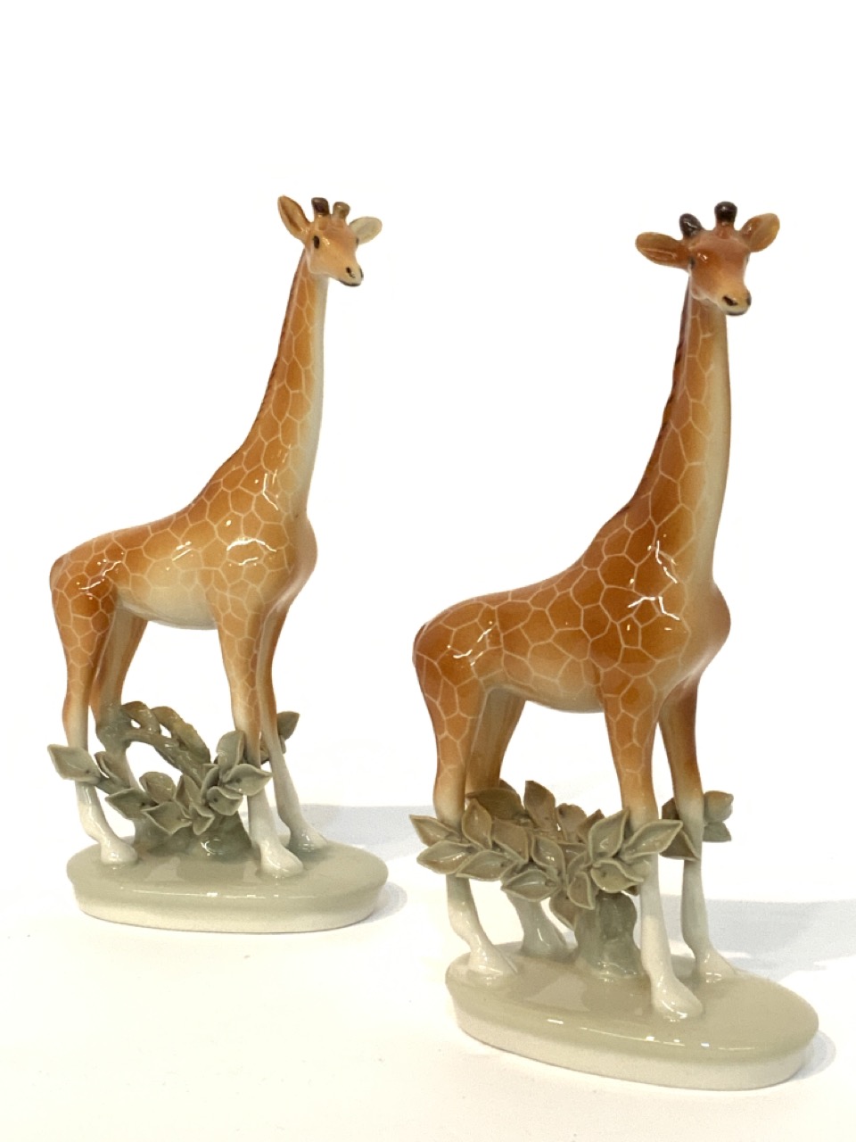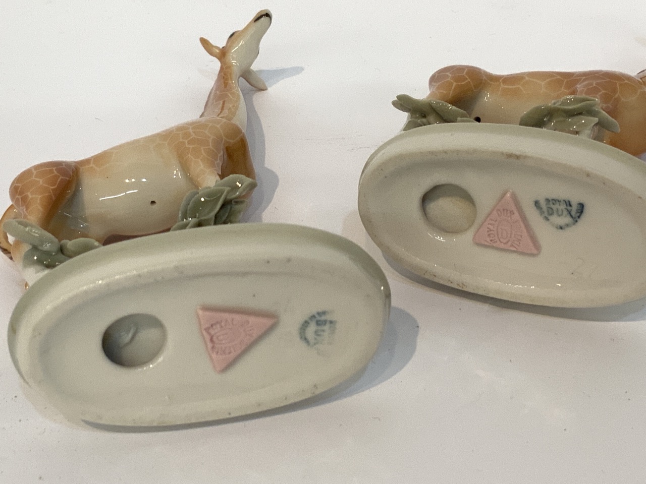 Royal Dux, cabinet or curio size porcelain giraffe figurines. Made in Czechoslovakia.