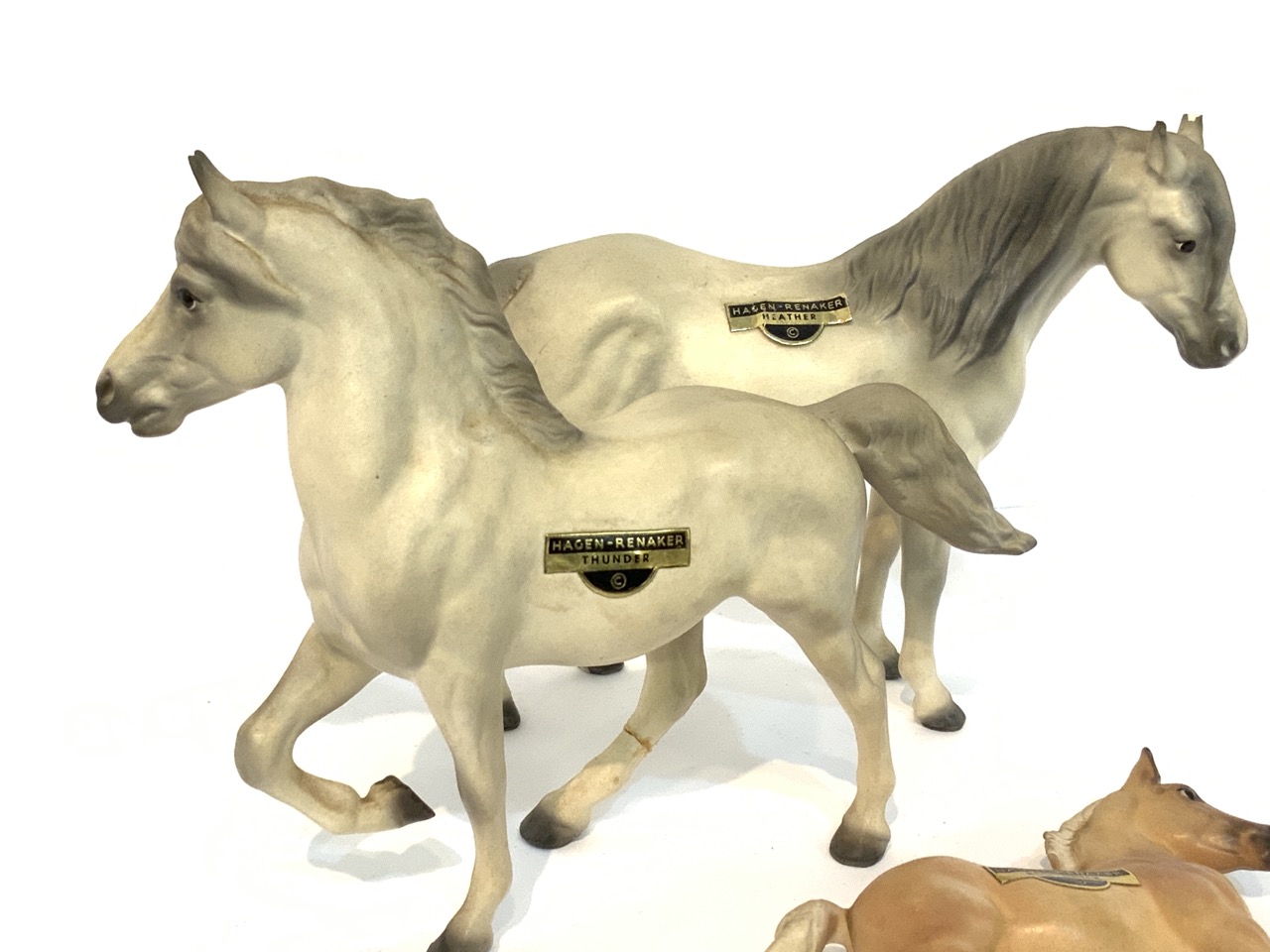 Hagen Renaker horse figurines. All damaged and needing repair. Thunnderhill, Heather and Roughneck.
