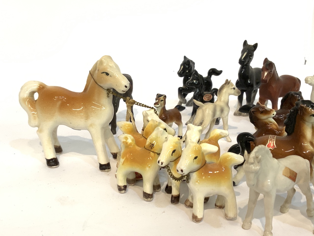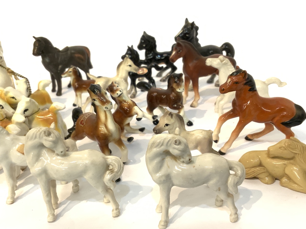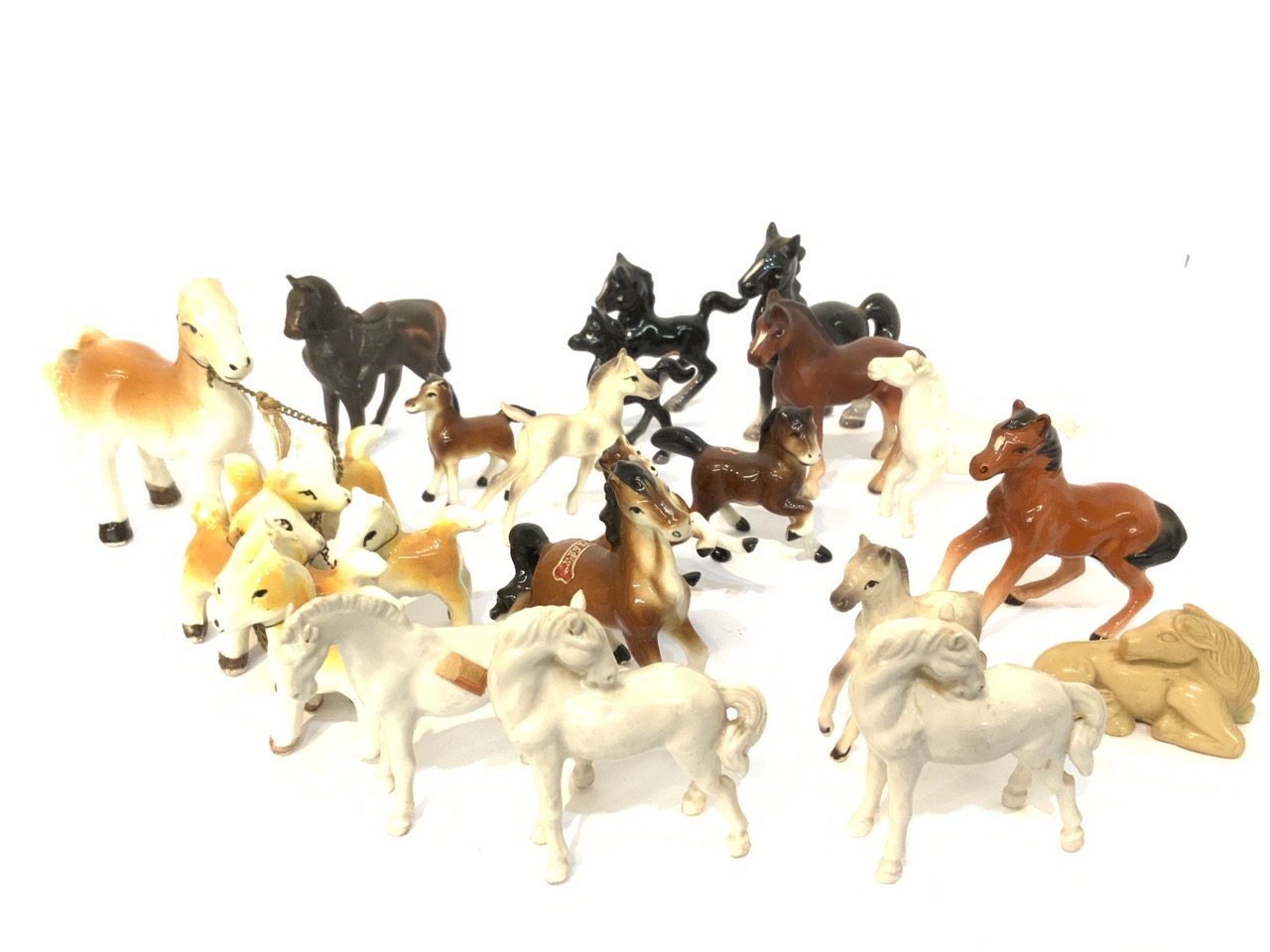 Minature porcelain horses group. Mostly Japan. 2-3" heights.