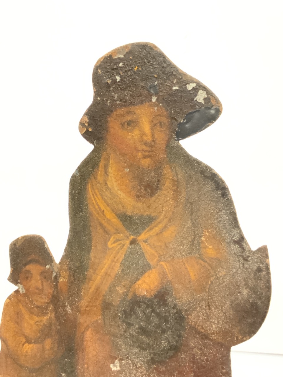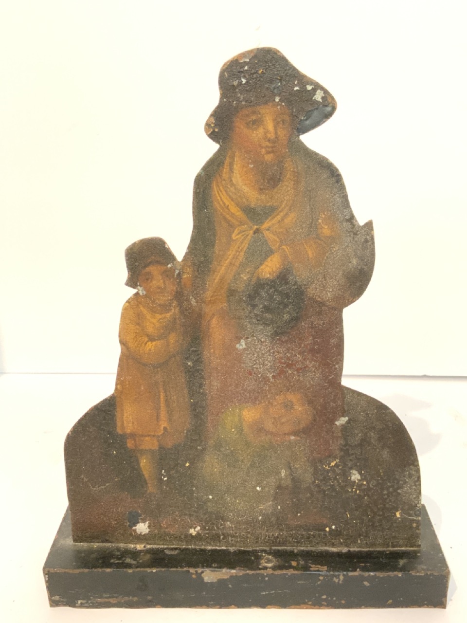 19th century metal candle screen with chromolitohgraph transferred mother with children.