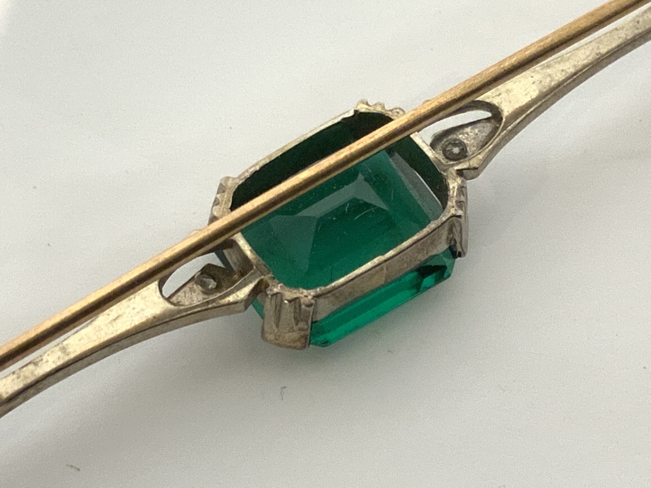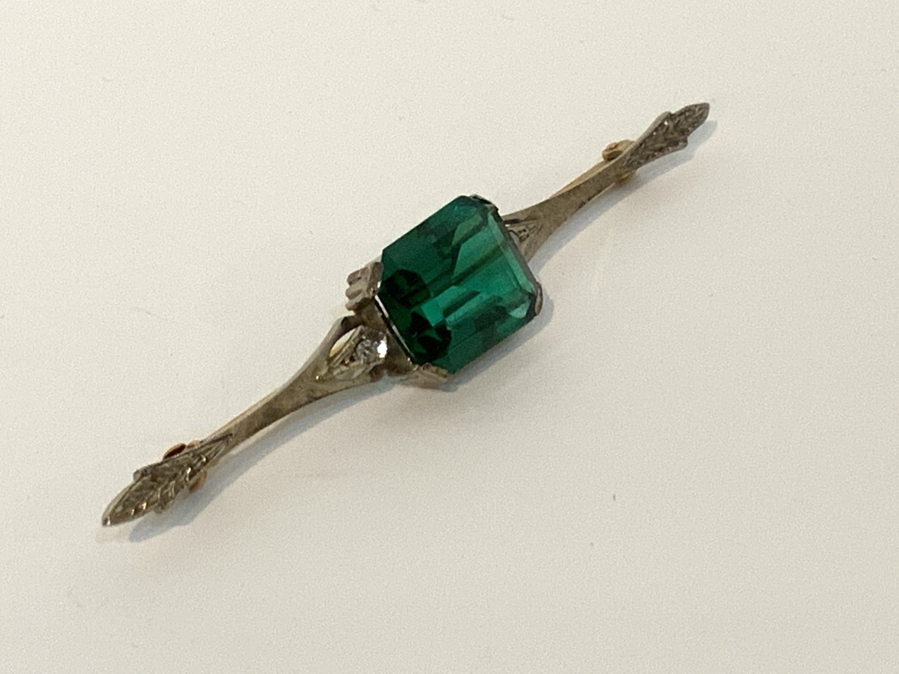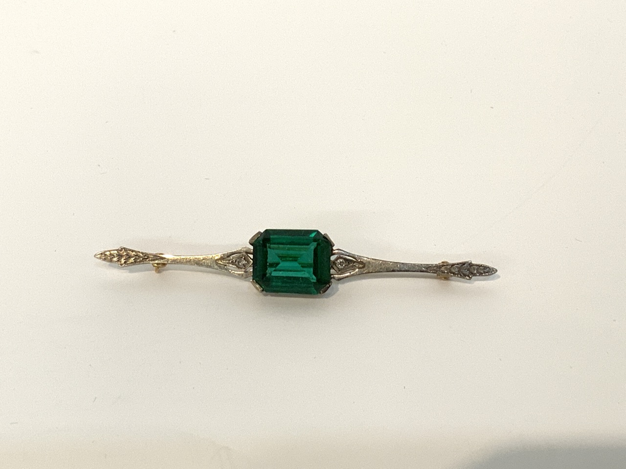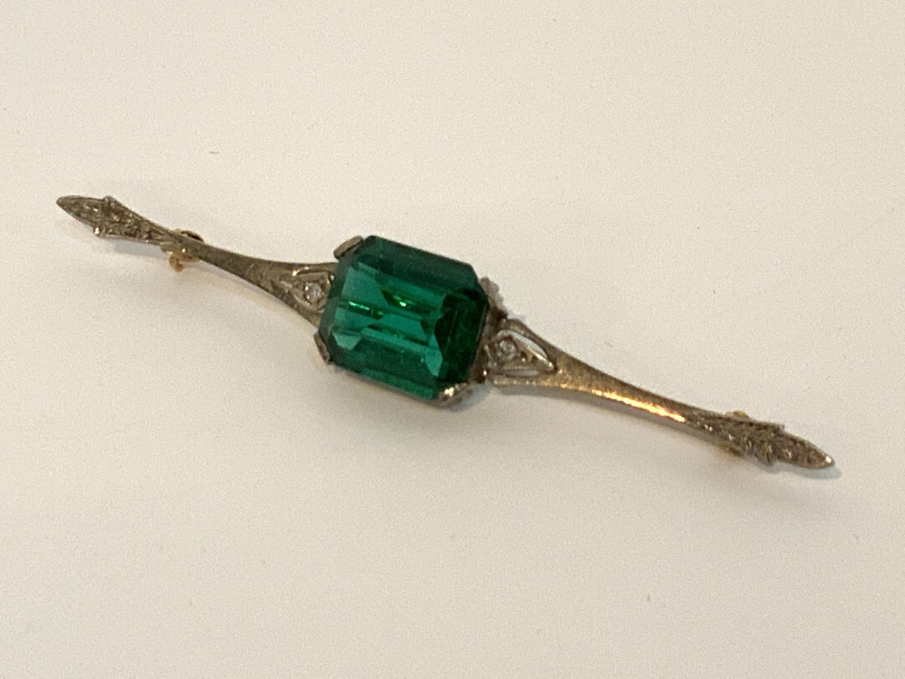 18k gold green tourmaline and diamond pin.
