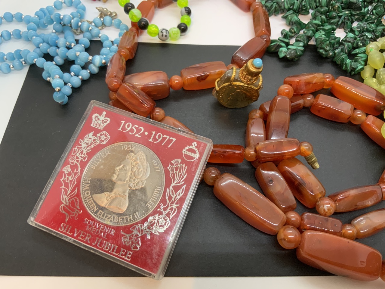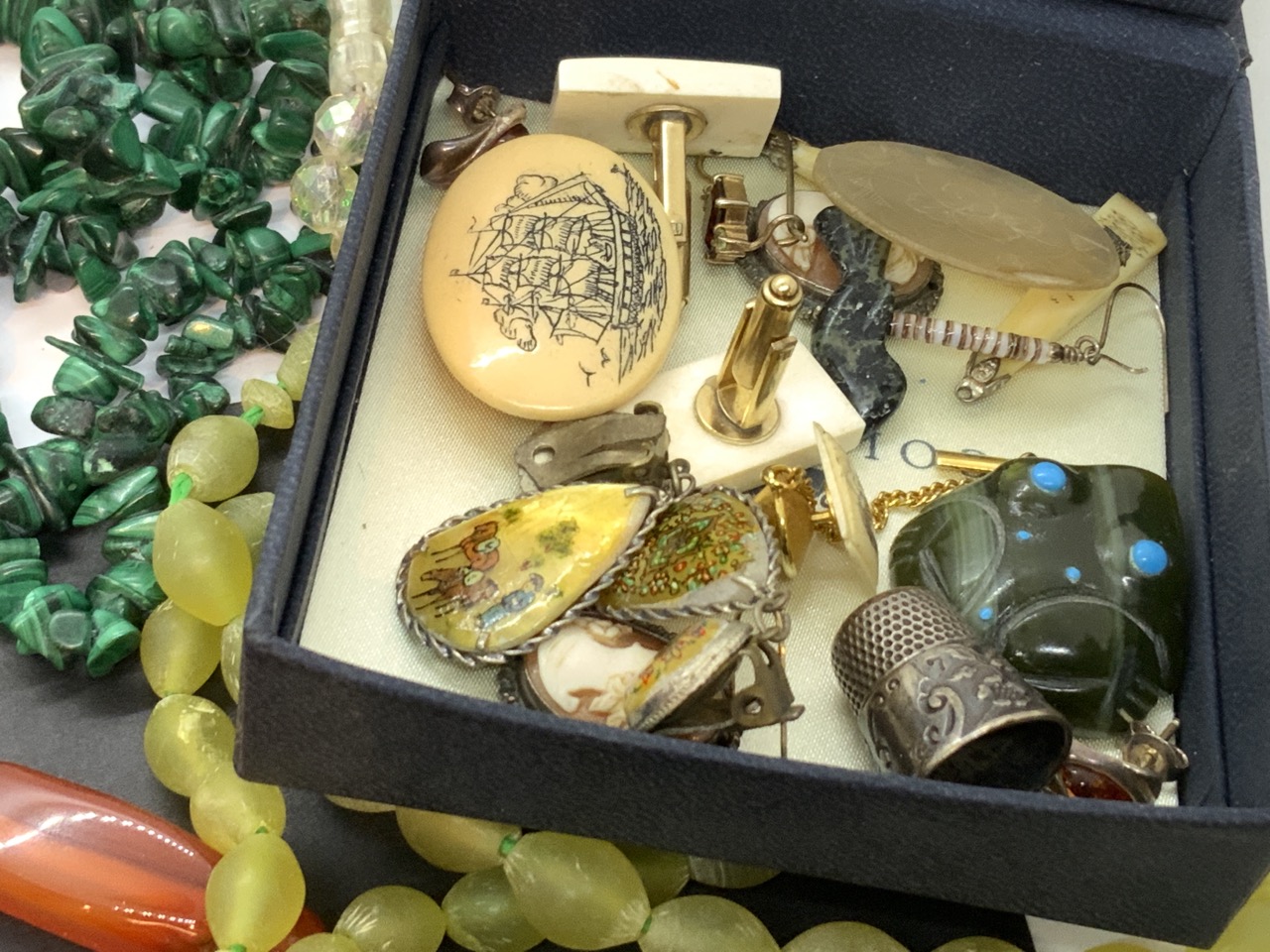 A compiled grouping of remaining estate costume jewelry and necklaces, jewelry for repair, silver, Canadian silver coin etc.