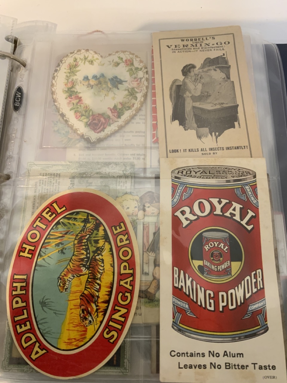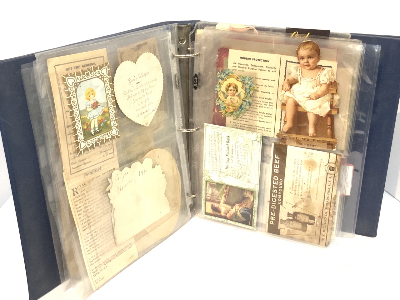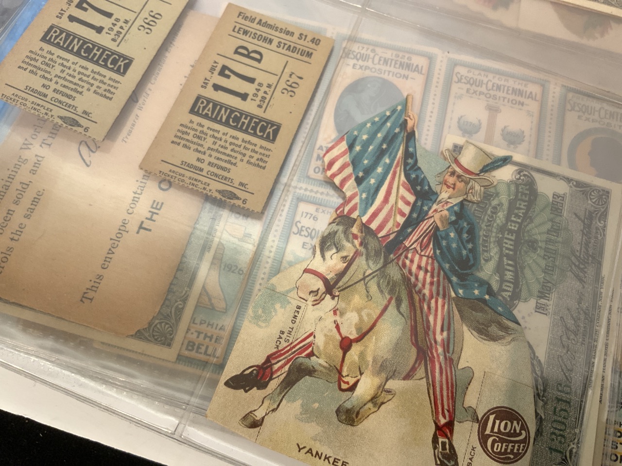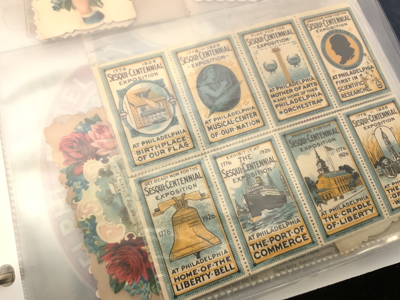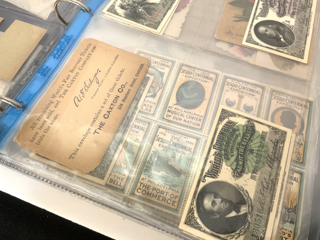 Ephemera Album. Mostly Victorian era trade cards. Over 100 pieces. Columbian Exposition Tickets, Sequi- Expo etc. See photograph preview.