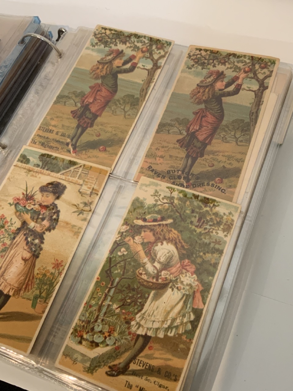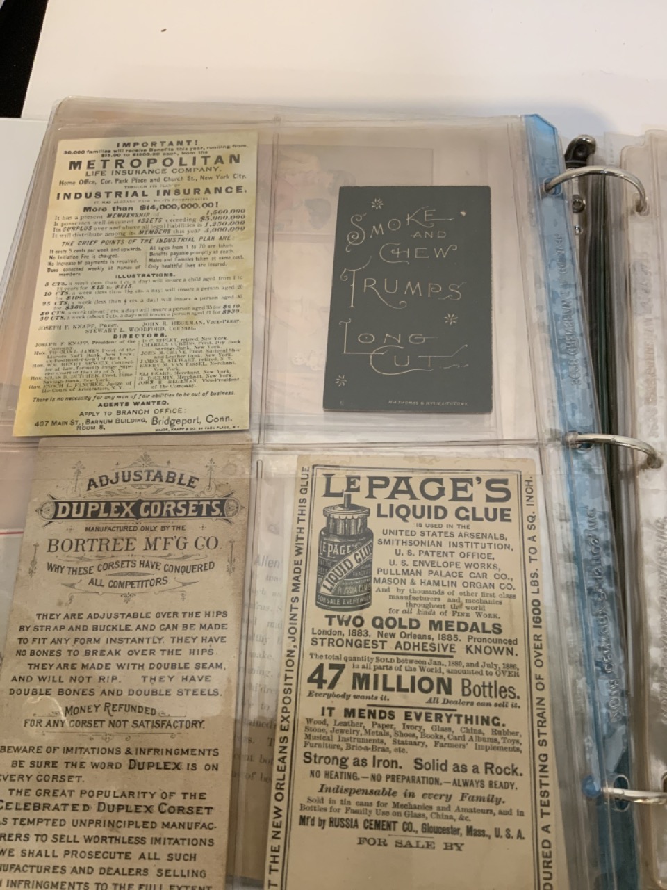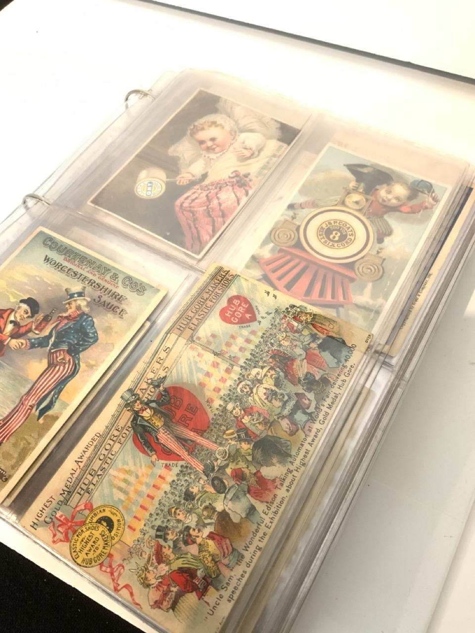 Victorian Trade Card Album. Two hundred thirty-two (232) pieces approx.. The album is full of Victorian card sets, advertising, Coins of the world set etc.