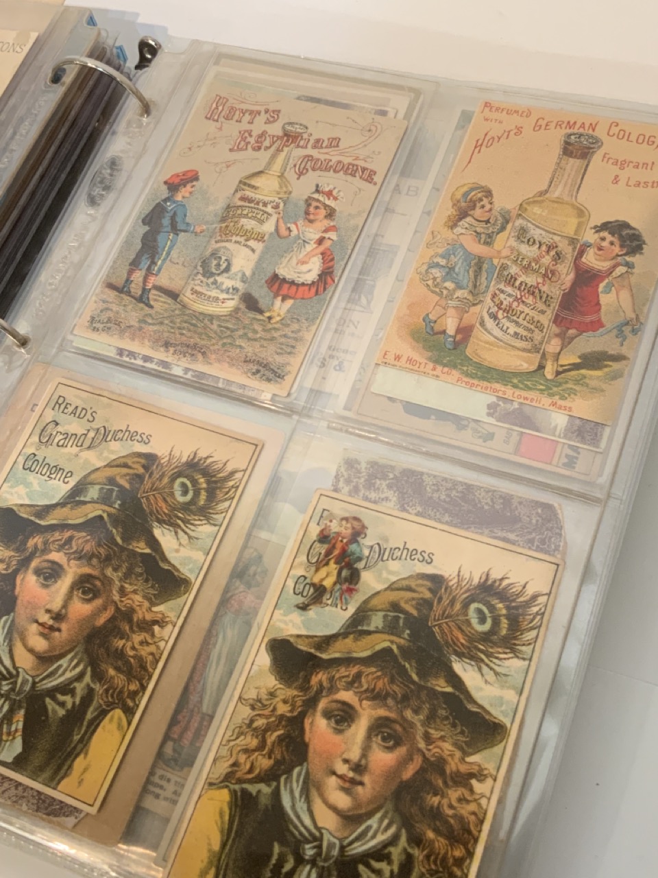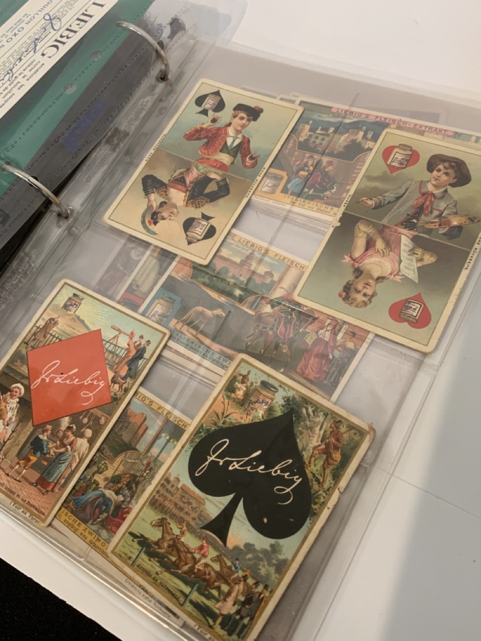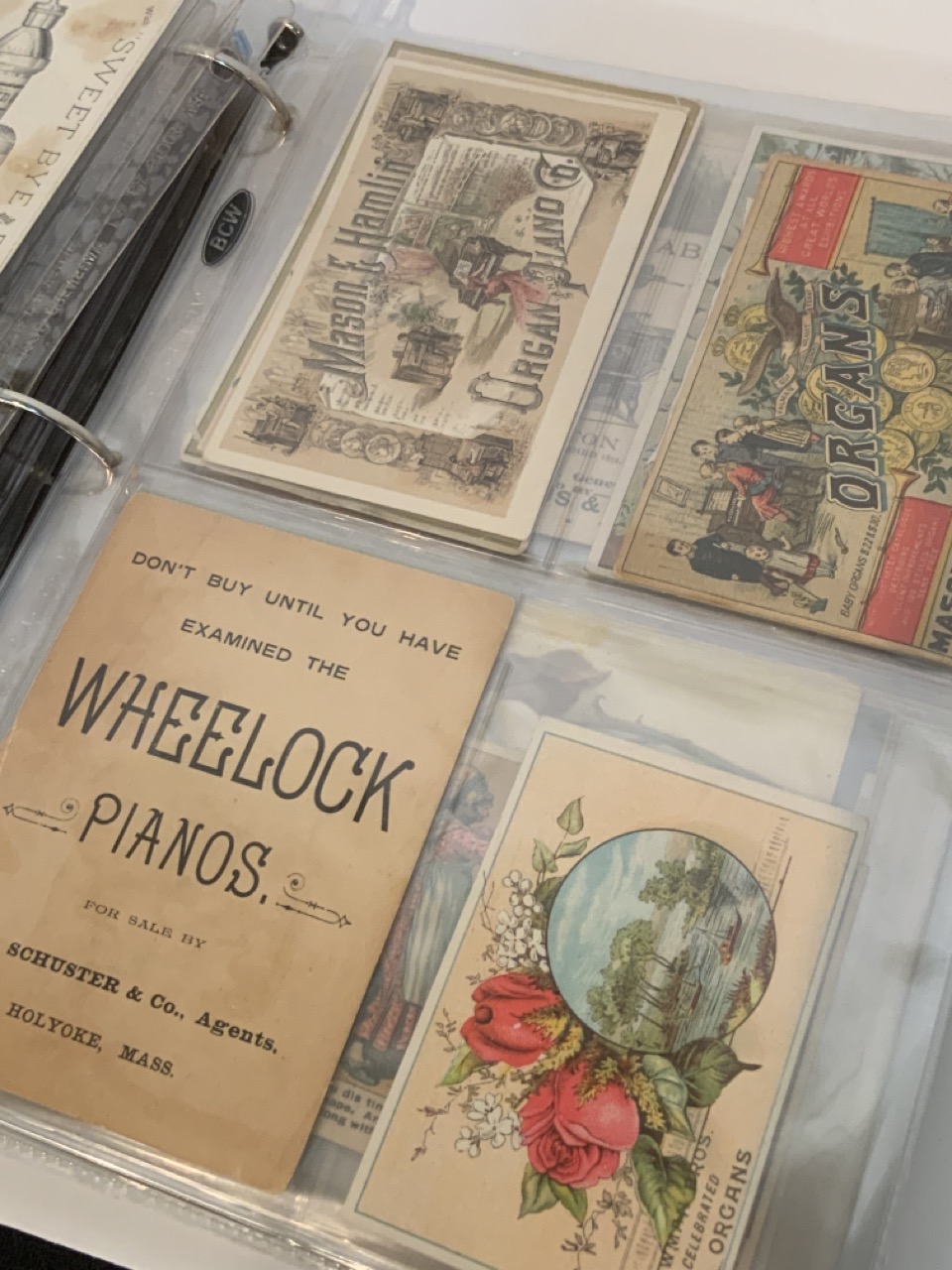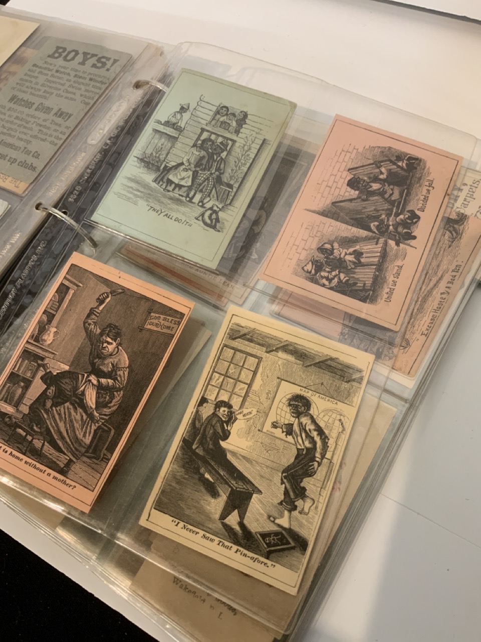 Victorian Trade Card Album. Two hundred thirty-two (232) pieces approx.. The album is full of Victorian card sets, advertising, Coins of the world set etc.