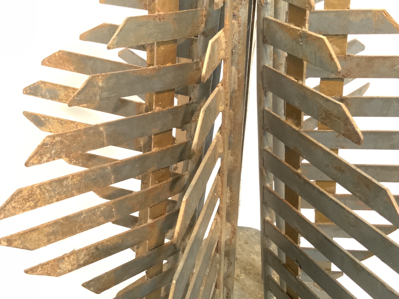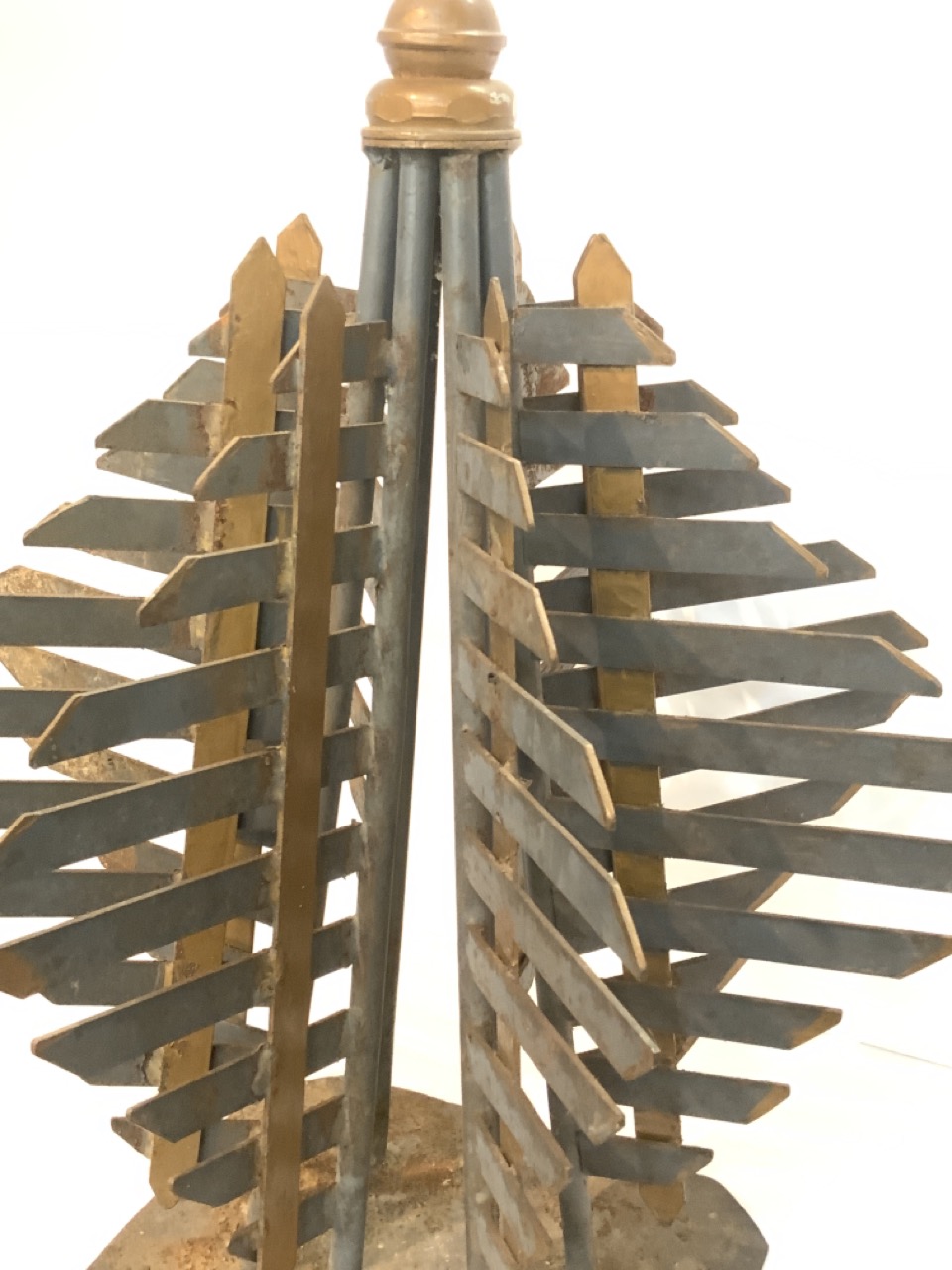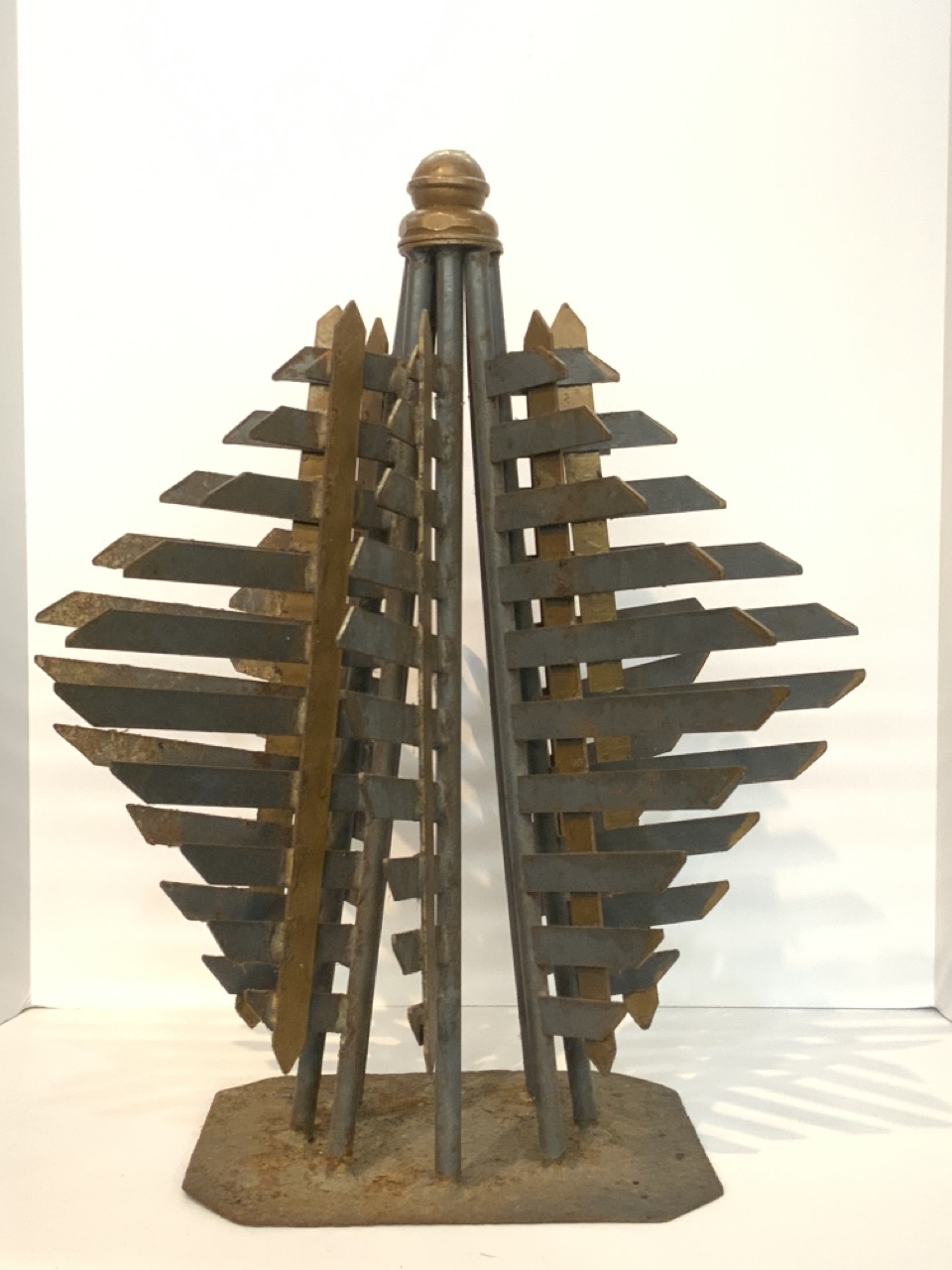 An Art Deco geometric design steel Christmas tree. Probably a store display.