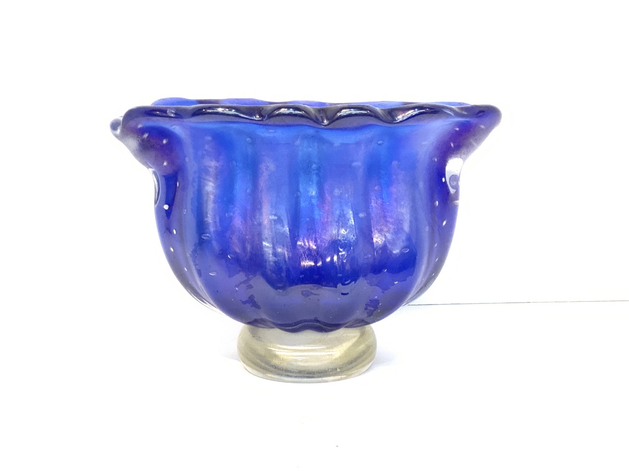 Murano art glass pillow form vase with controlled bubble and gold fleck at base.