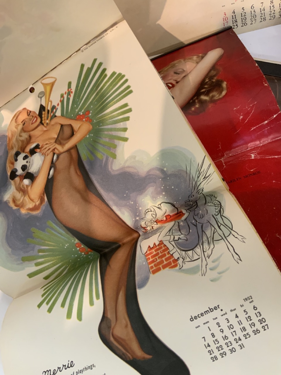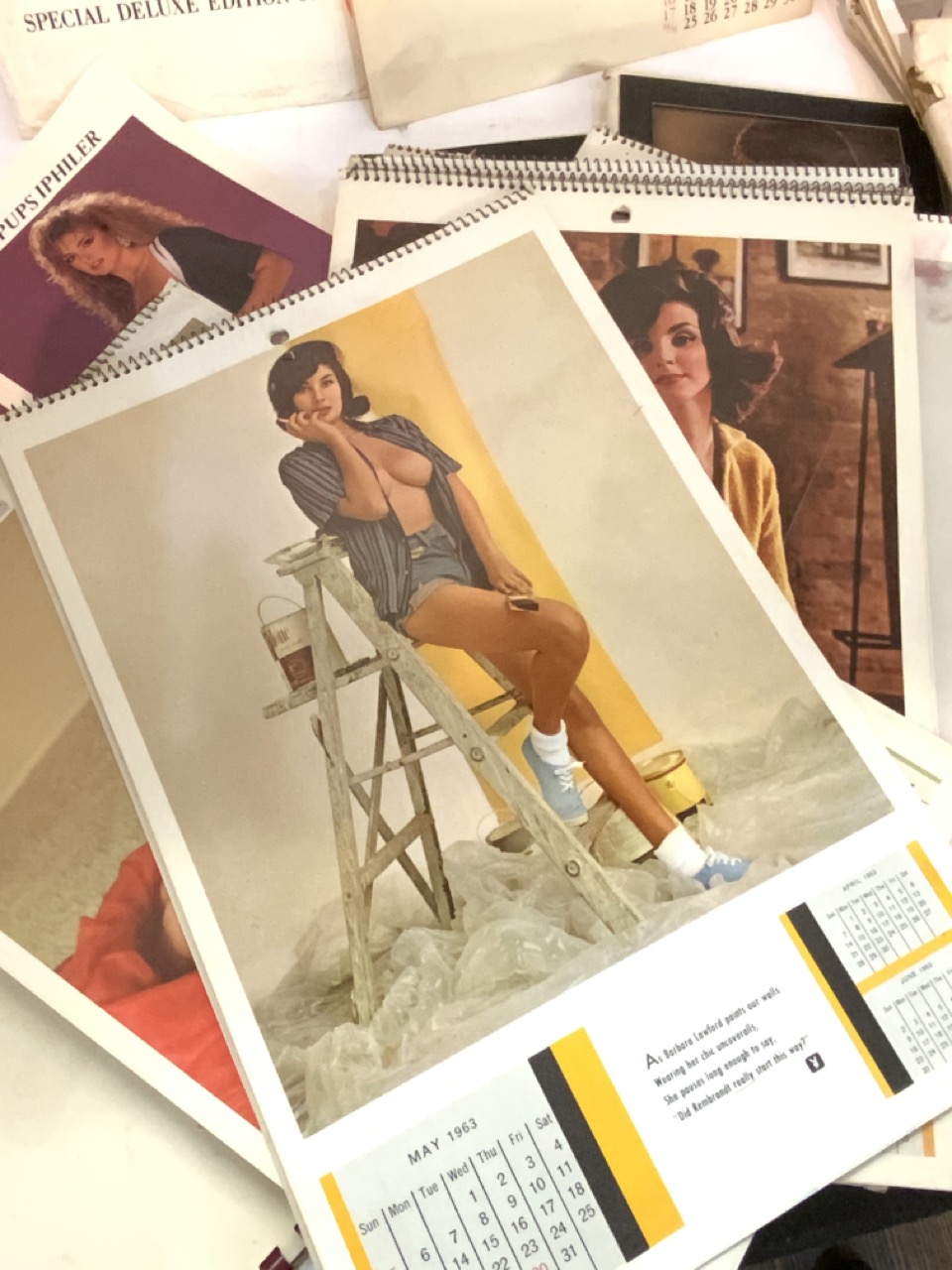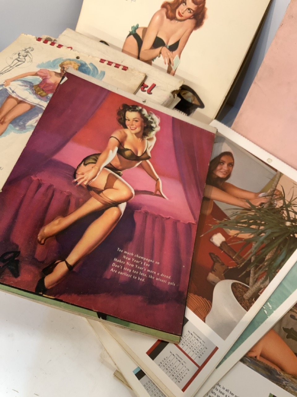 Risque, Esquire and Playboy related calendars and pin ups. Jayne Mansfield unopened life size poster, Marilyn Monroe etc. Please see photograph preview or call.