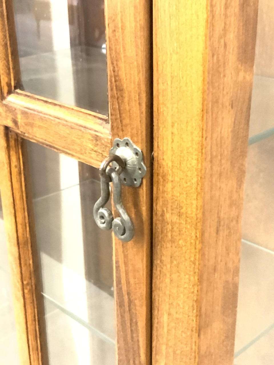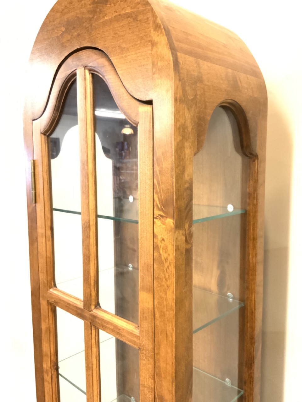 A pair of custom made curio display cabinets with adjustable glass shelving.