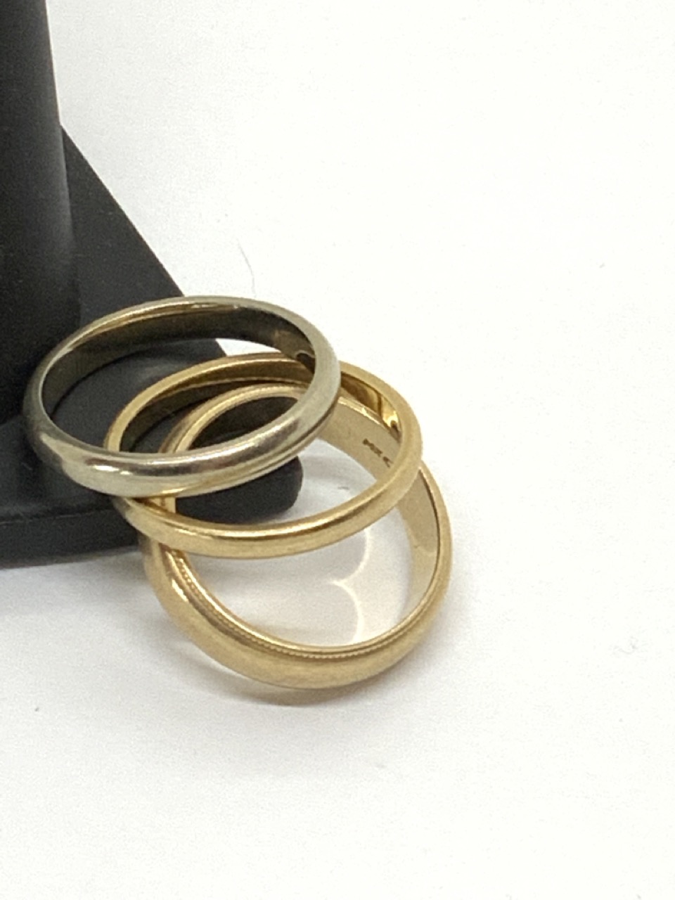 Three (3) 14k gold wedding bands.