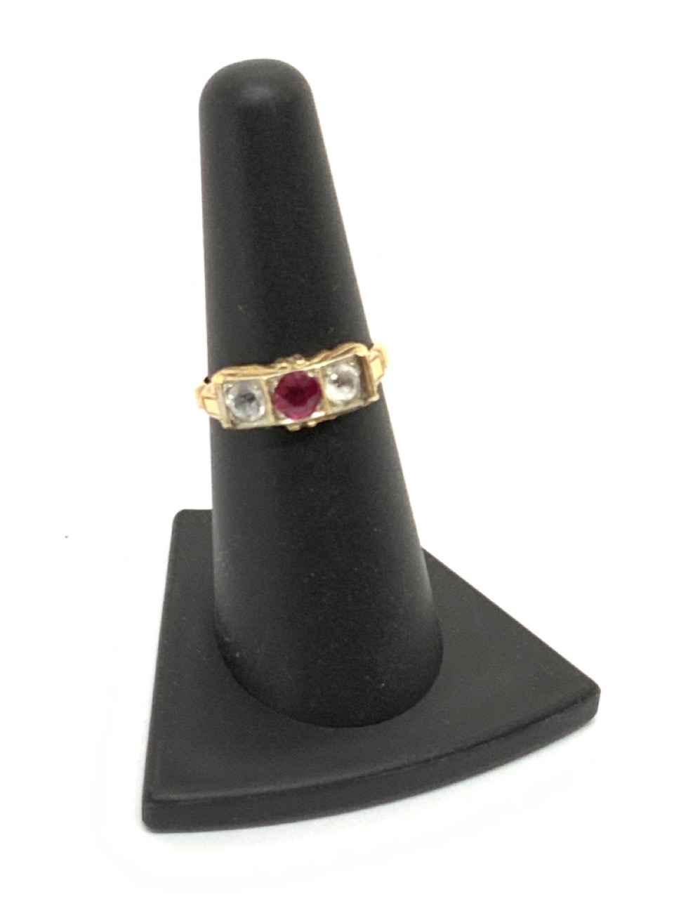 14k white sapphire and ruby ring.