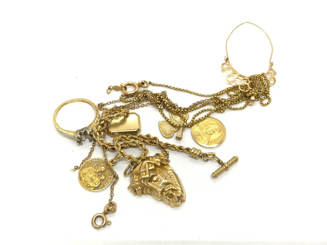 Assorted estate compiled 14k yellow gold jewelry for scrap, use and repair. Ten pieces