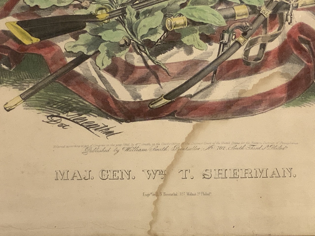 Major General William T. Sherman lithograph print by Rosenthal. Printed in Philadelphia.