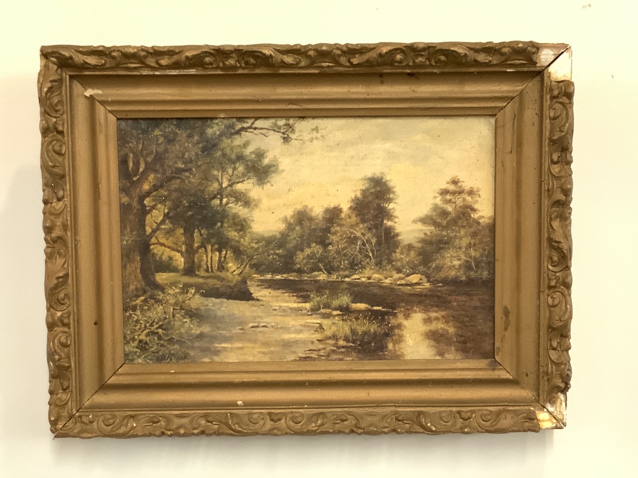 Oil on canvas landscape. Illegiby signed lower left.