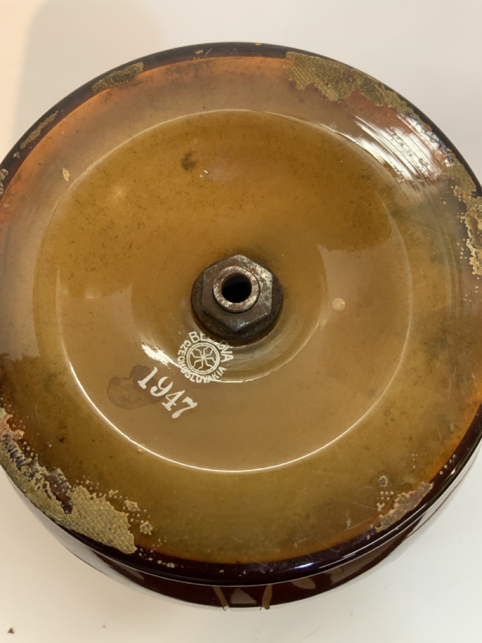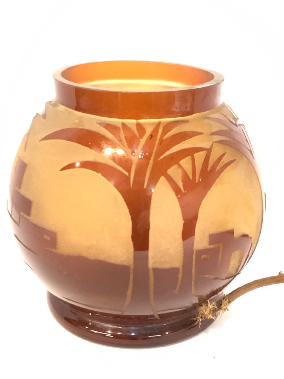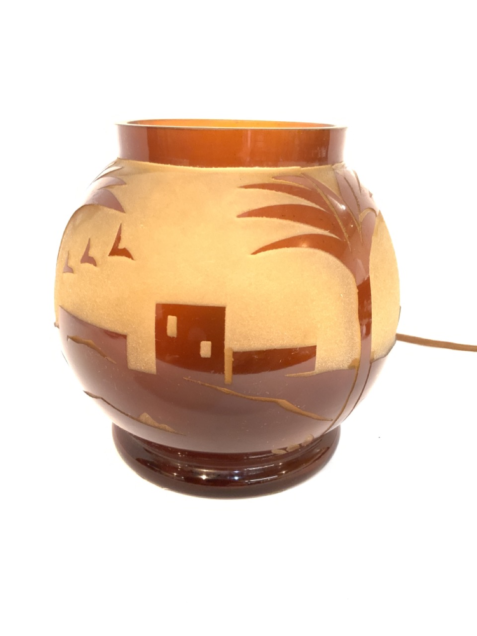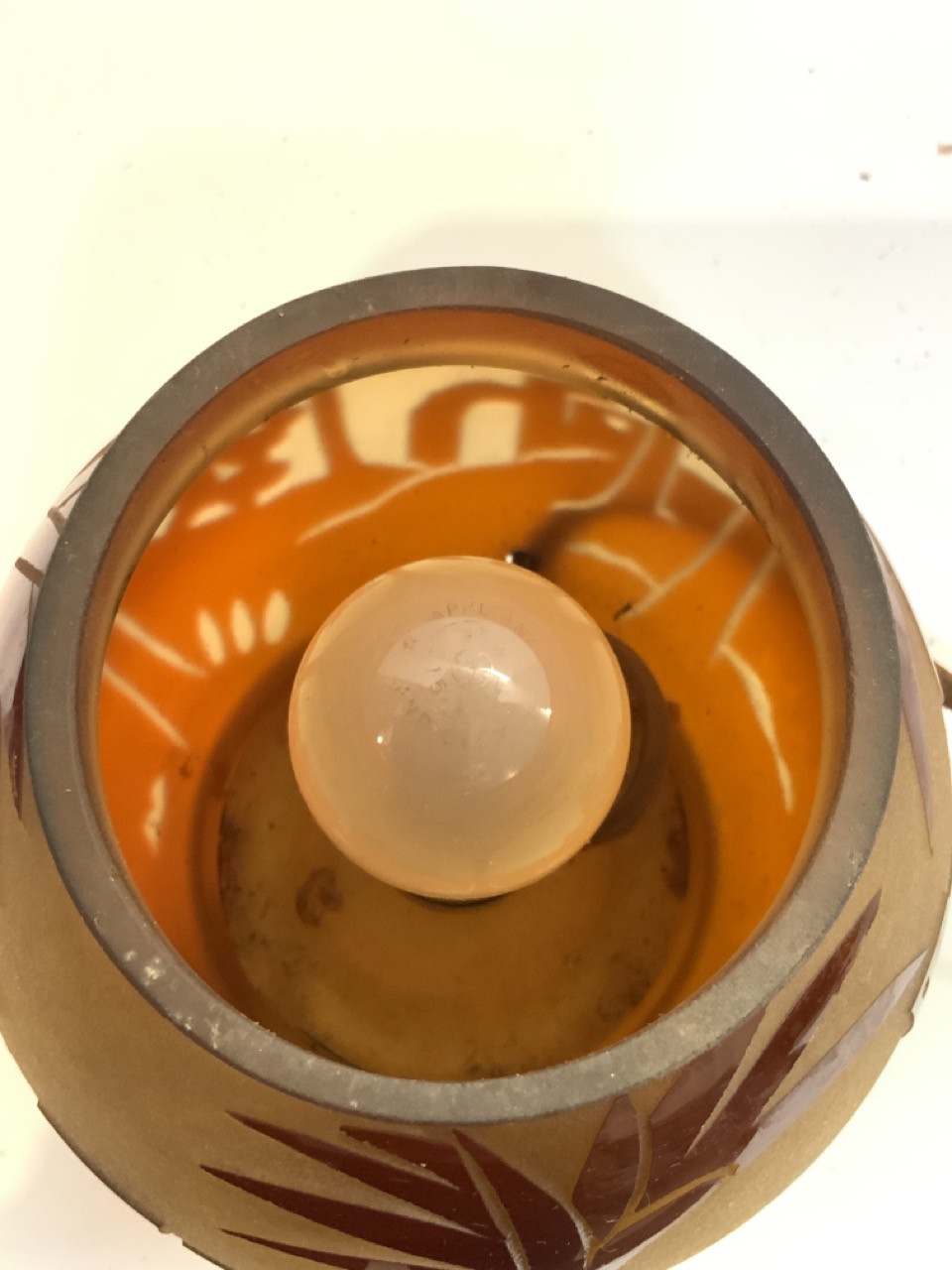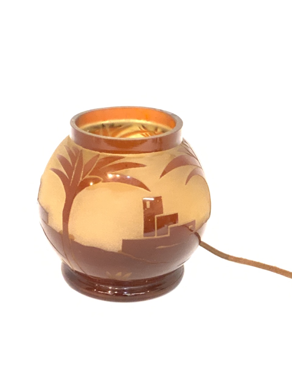 Signed Bellova Czech glass boudoir night lamp. Geometric patterns, , Art Deco period.