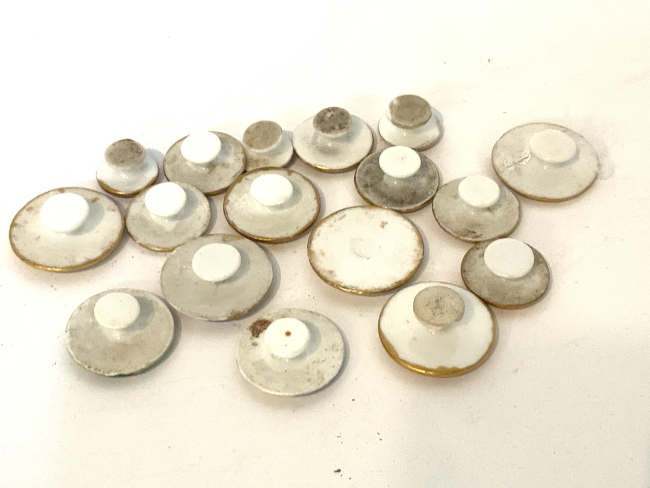 Seventeen (17) Victorian hand painted porcelain buttons. 1/2" to 1" diameter.