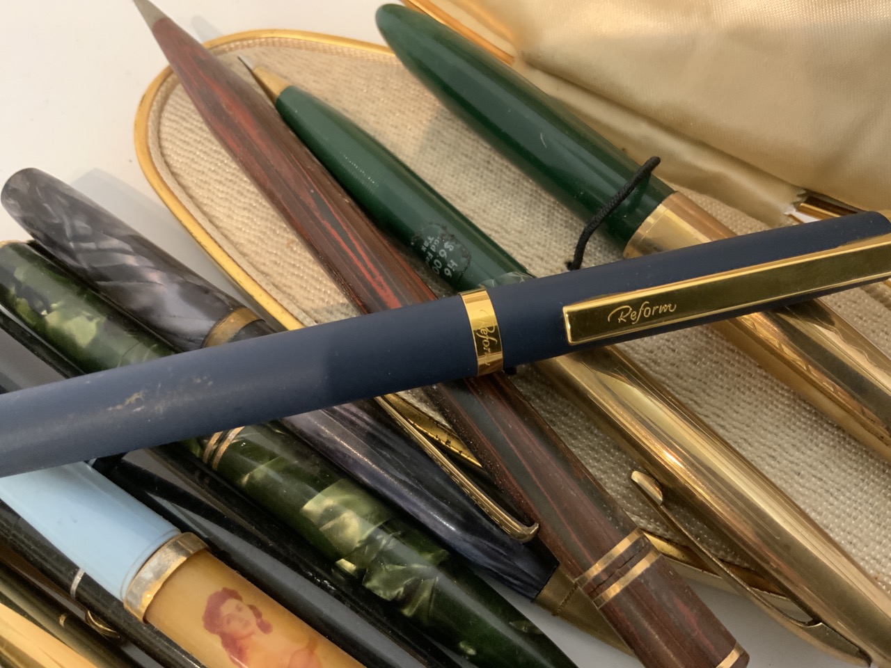 A compiled grouping of vintage pens and pencils as seen in photograph preview.