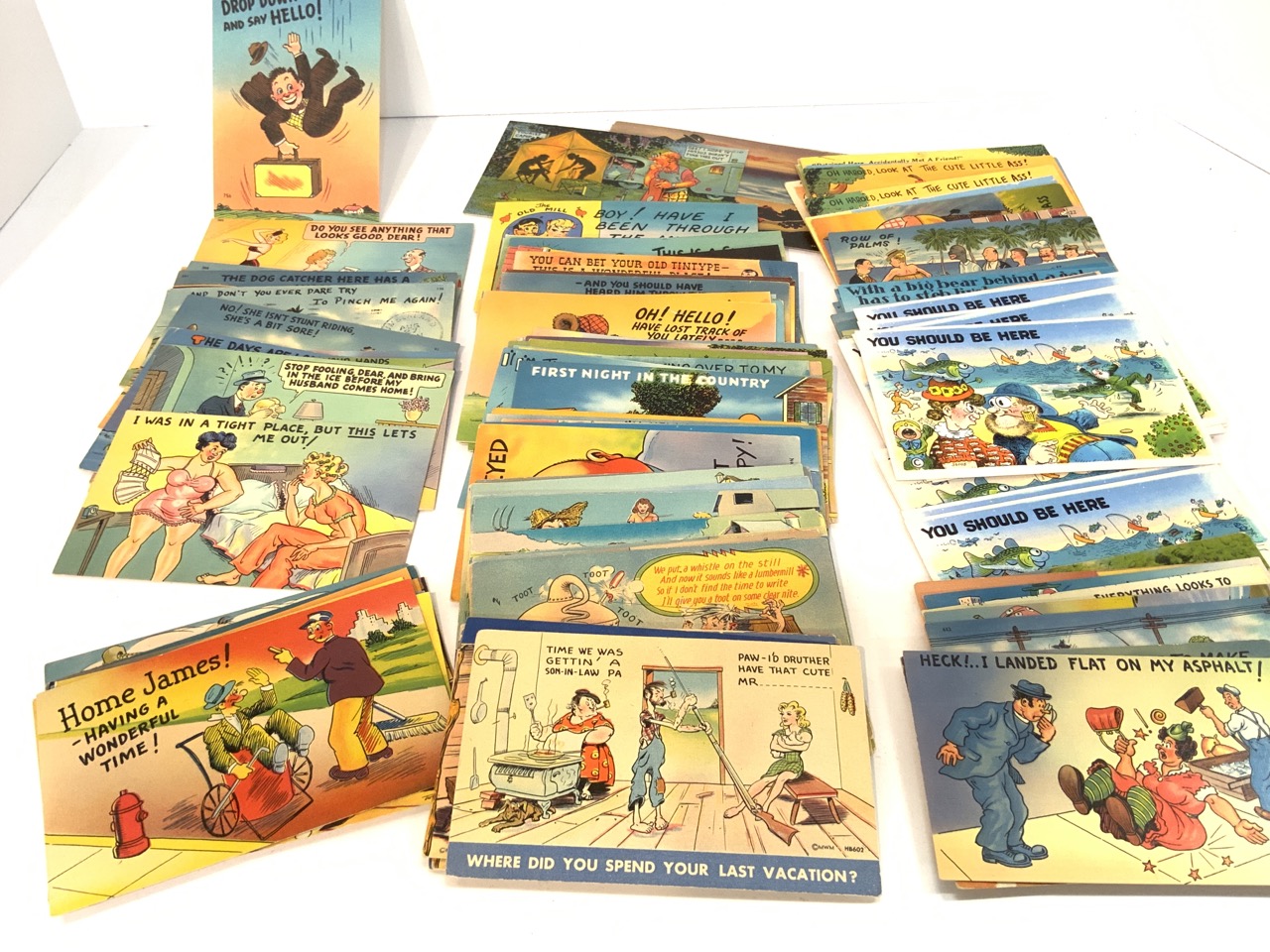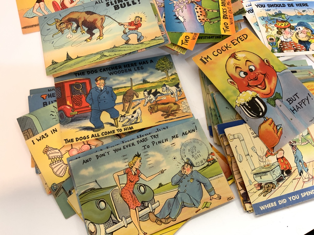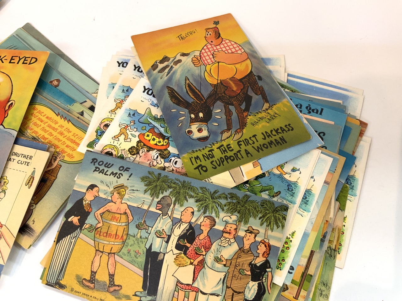 One Hundred-Fifty (150) vintage comical postcards on linen stock paper.