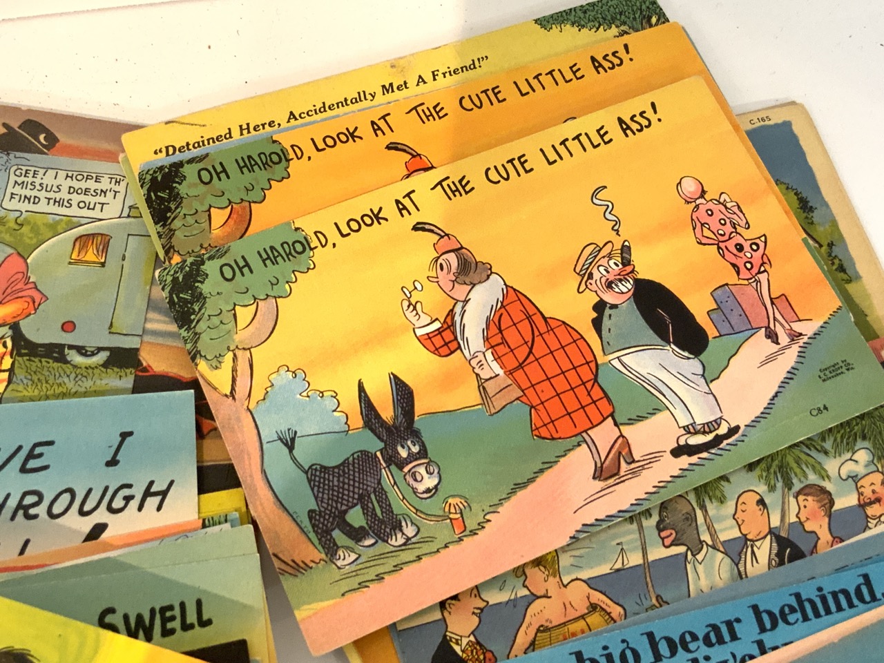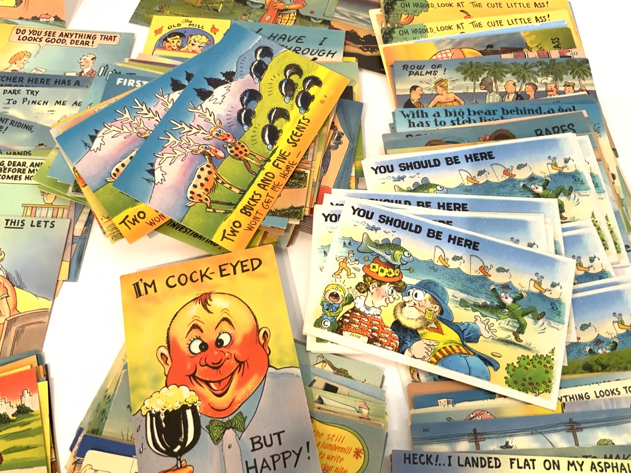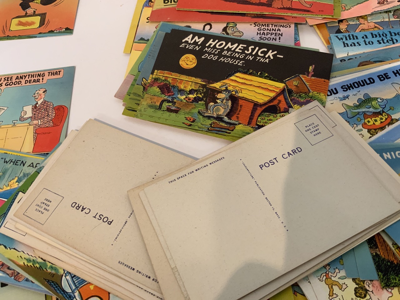One Hundred-Fifty (150) vintage comical postcards on linen stock paper.