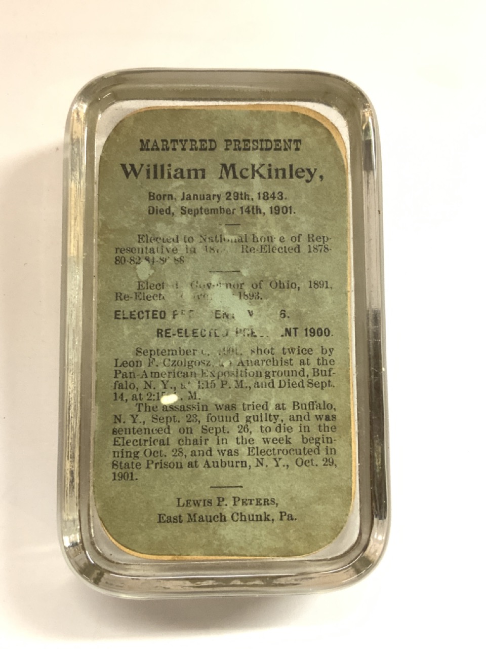 William McKinley political paperweight.