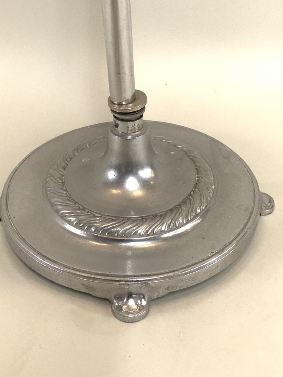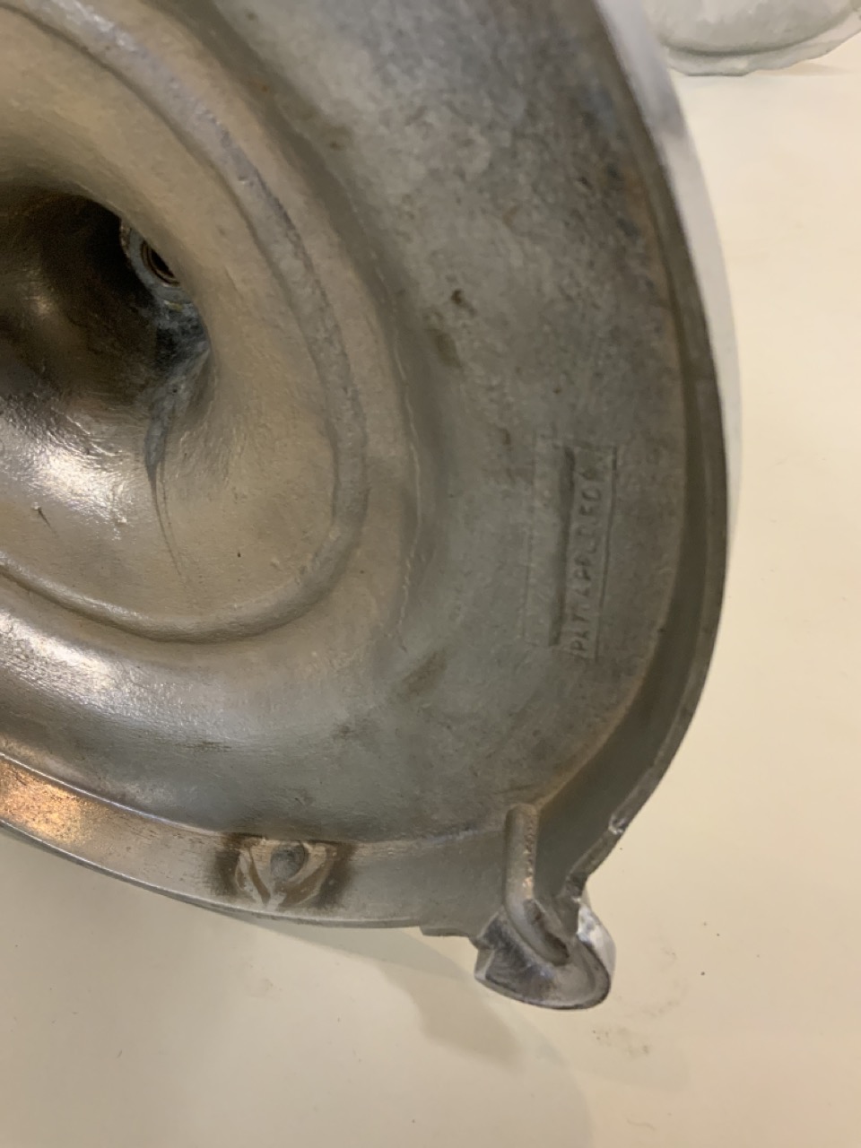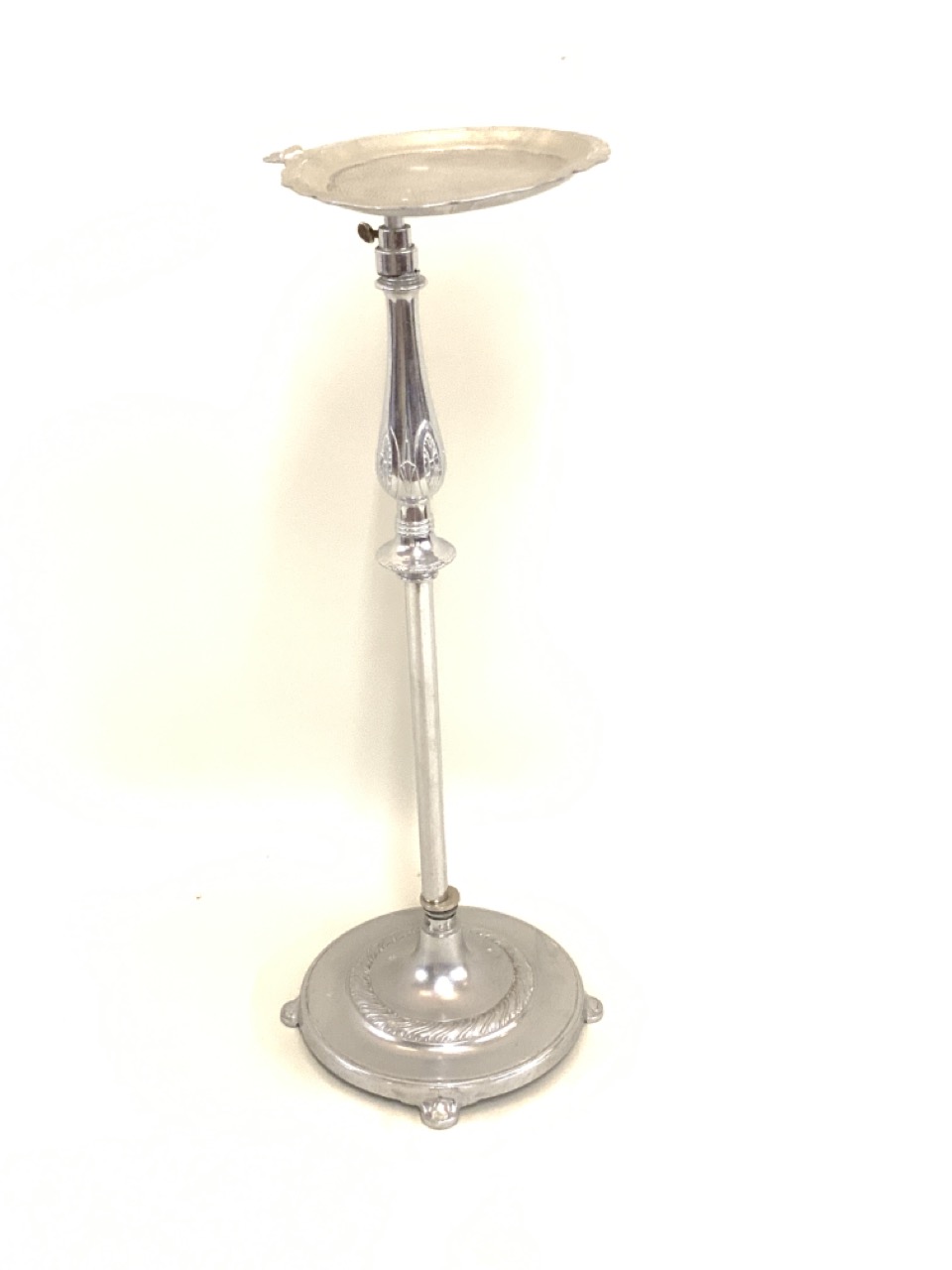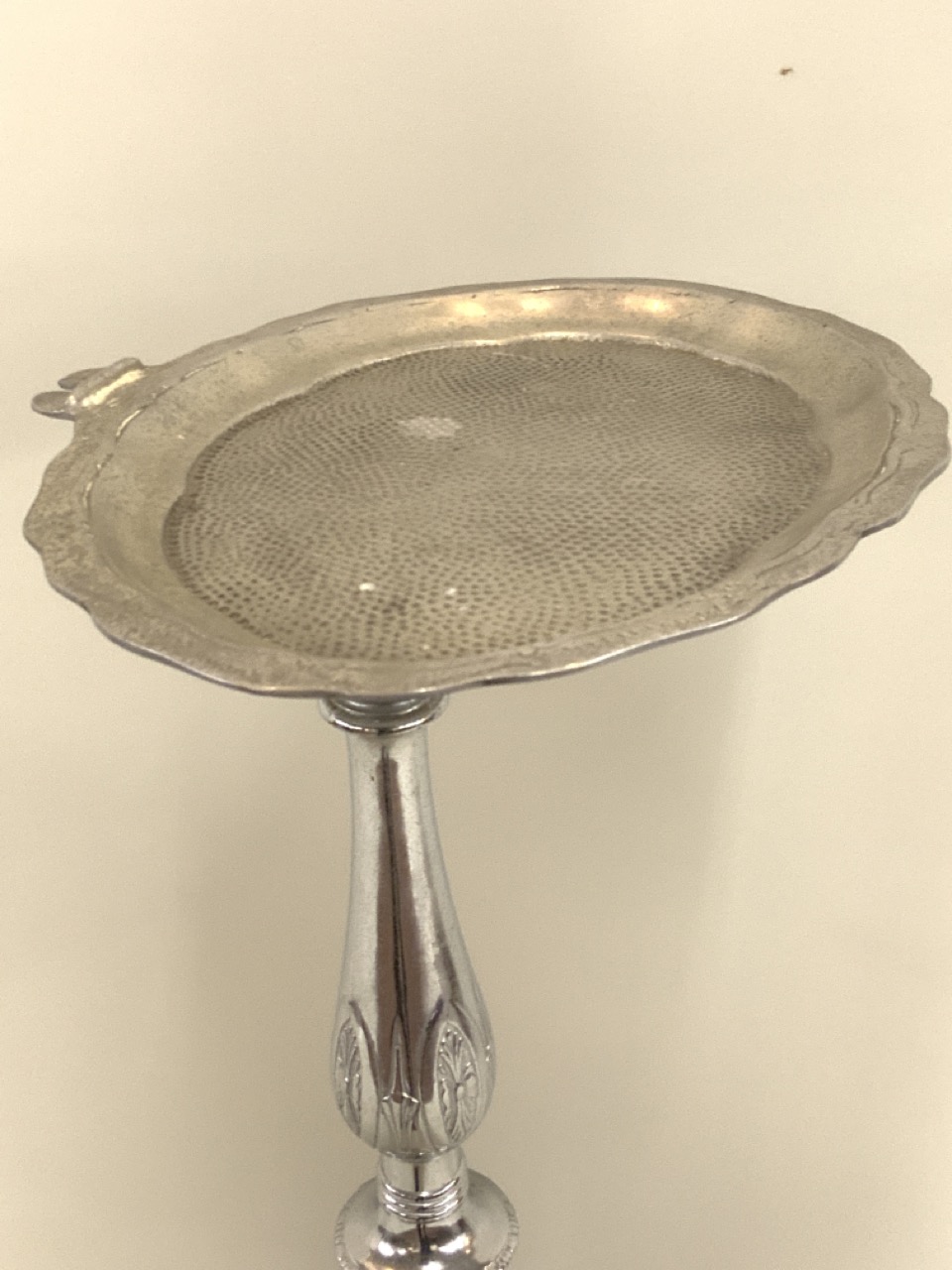 Funeral home chrome plated receiving dish. Marked Pat. Pending at base.
