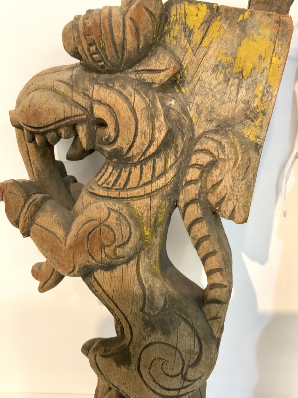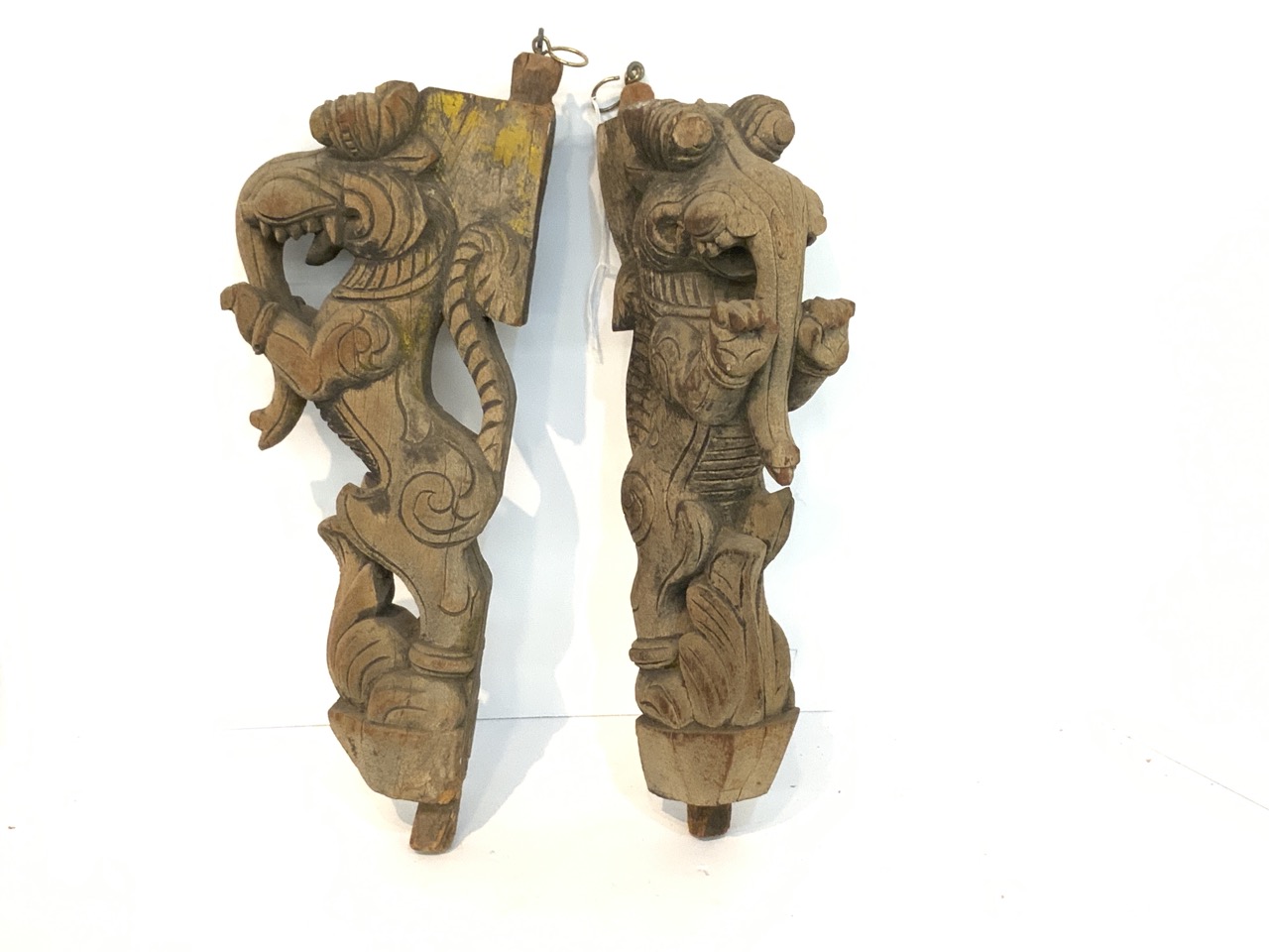 Indian architectural temple "Hanish Hindu God" carved wood brackets.