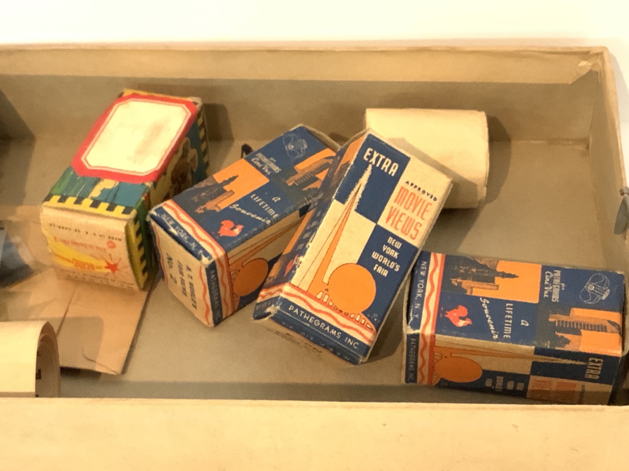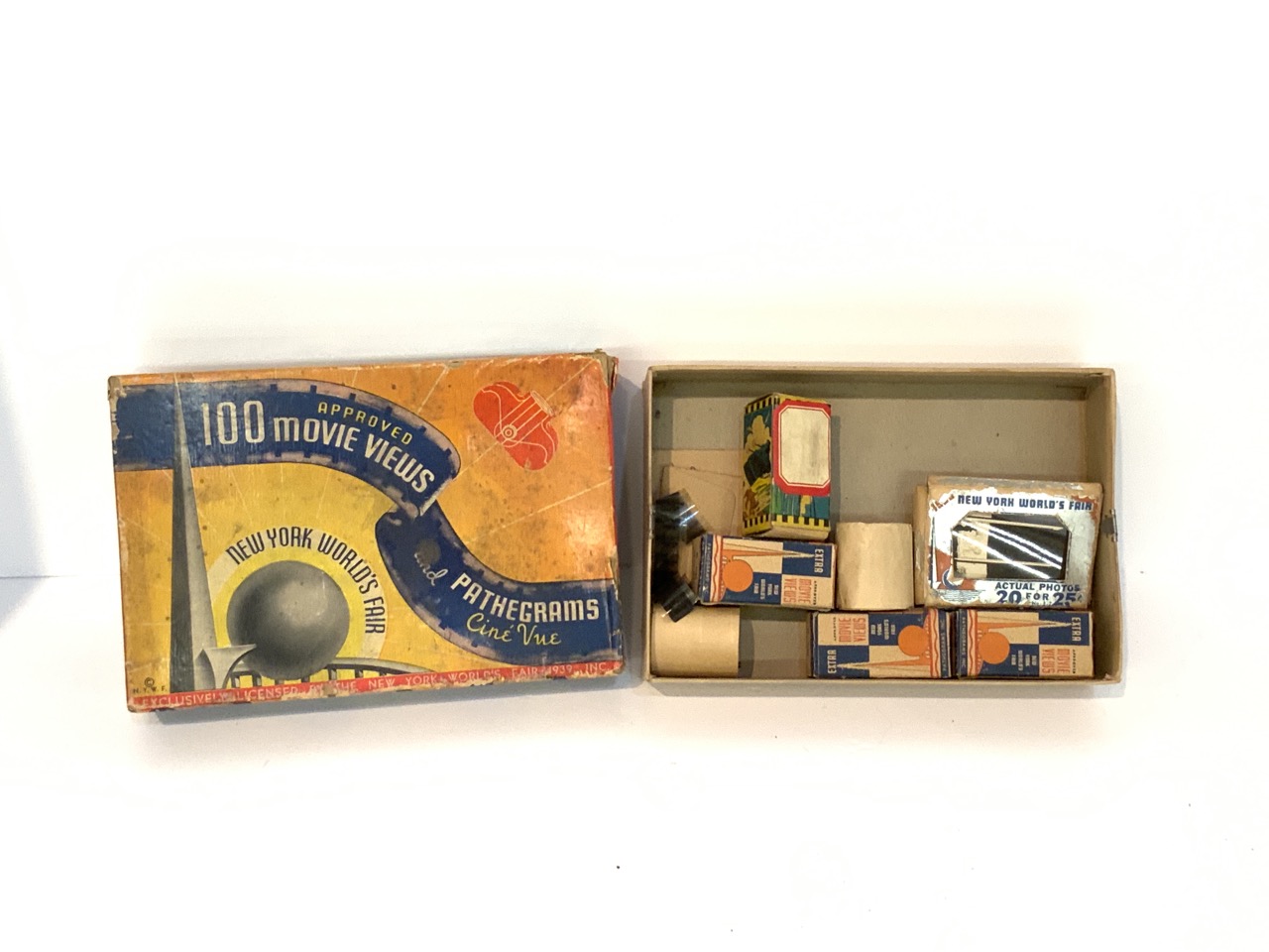 1939 New York World's Fair Box With Movie Reels, Empty Boxes and Photographs. Reel boxes are empty. Please see photograph preview or call.