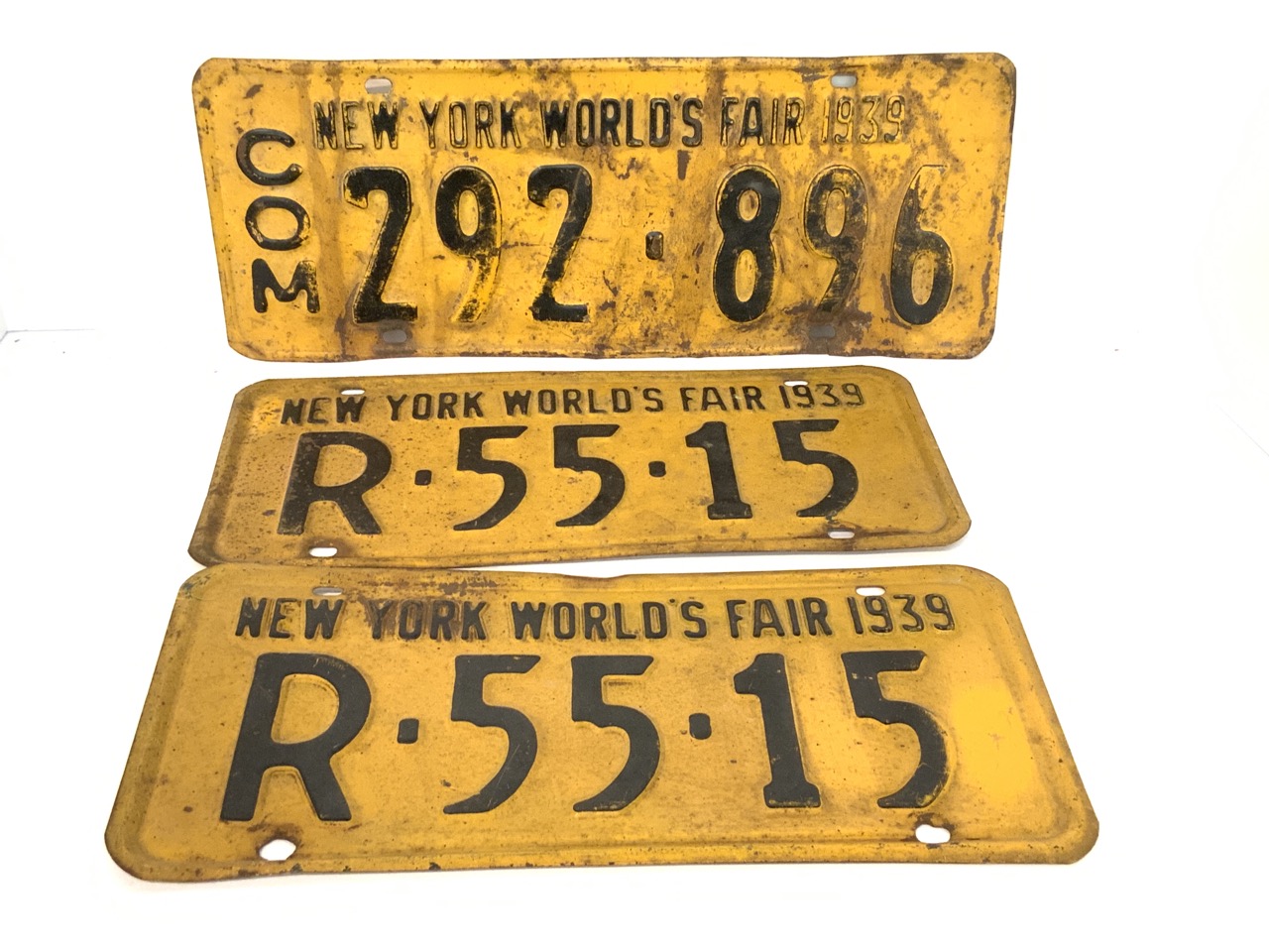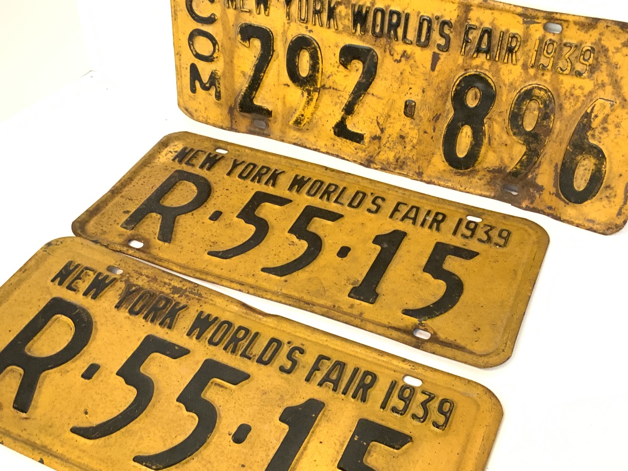 Three (3) 1939 New York World's Fair license plates