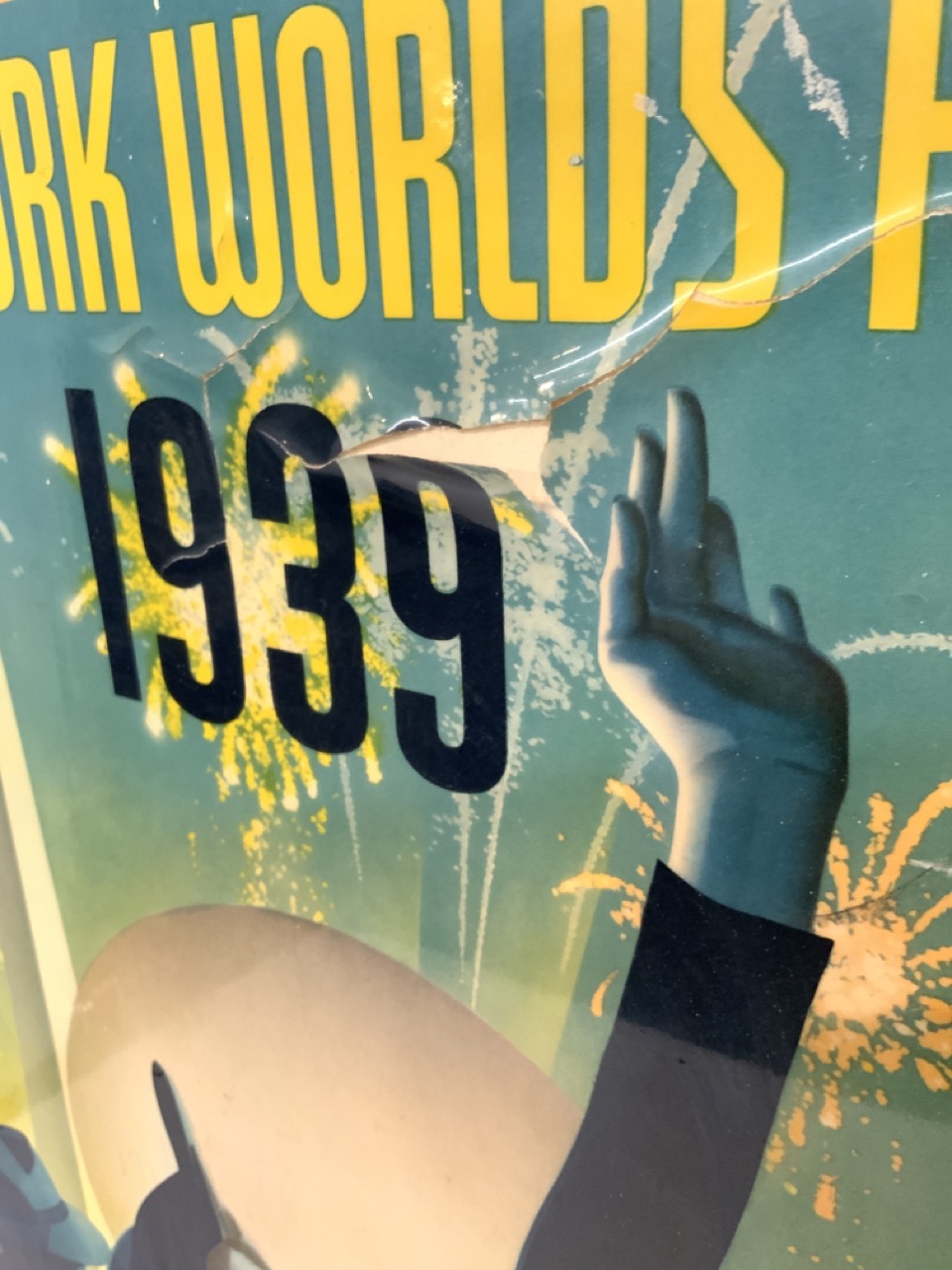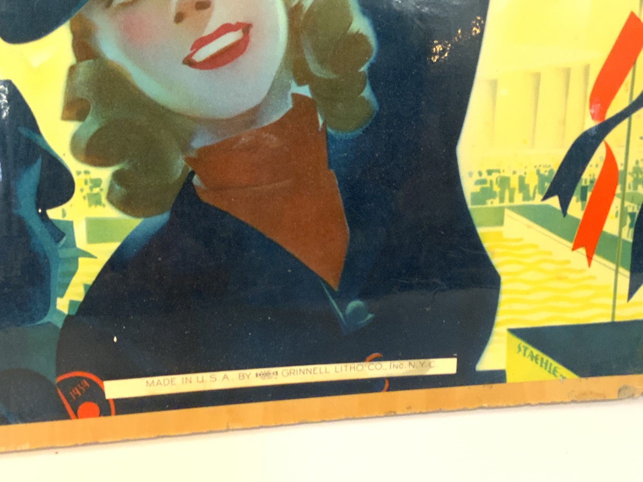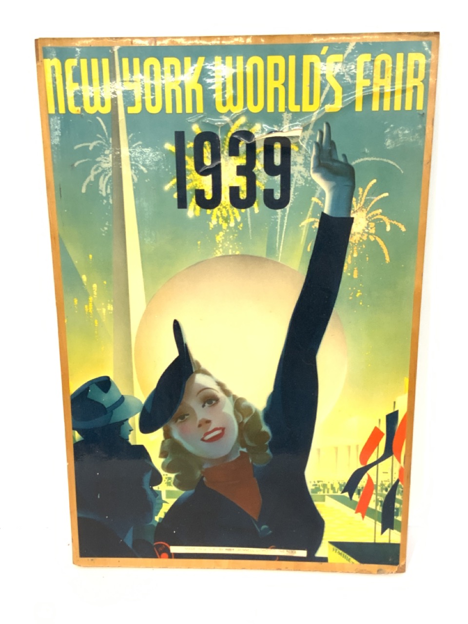 1939 New York World's Fair poster by Albert Staehle and printed by Grinnell Litho. Co. Poster. Poster was treated with shellac and mounted on board.