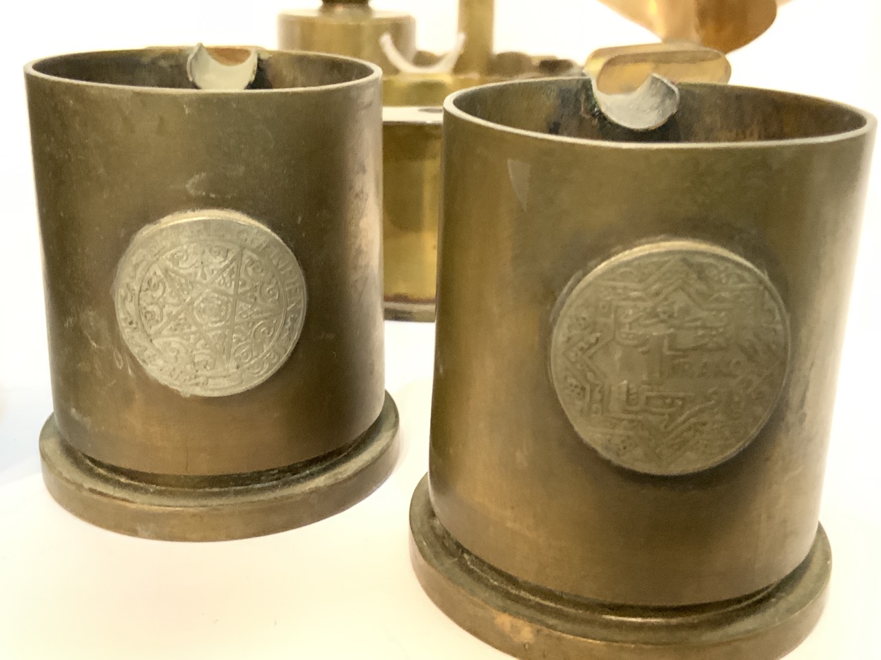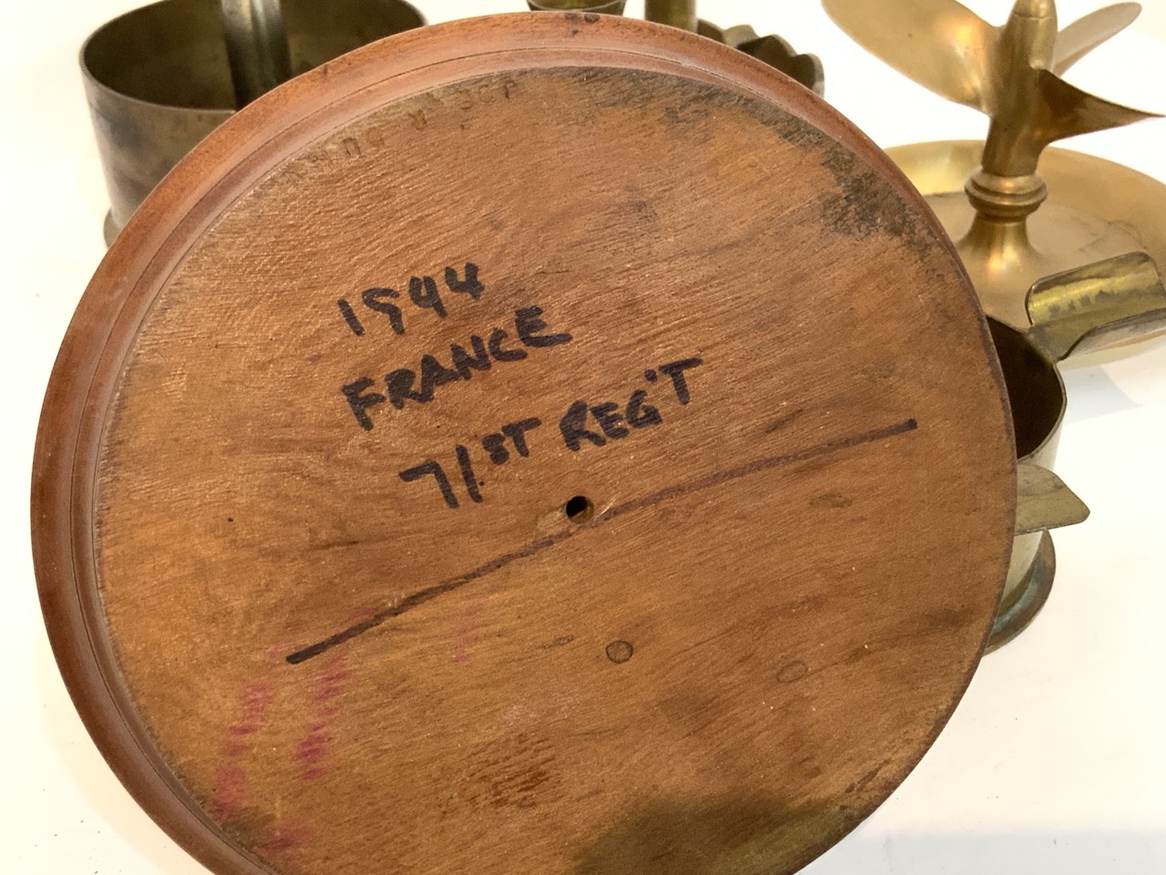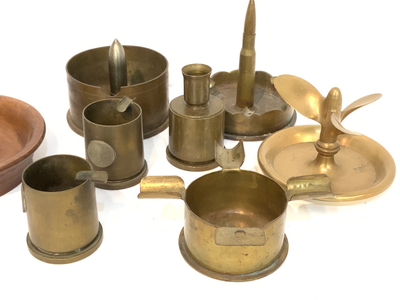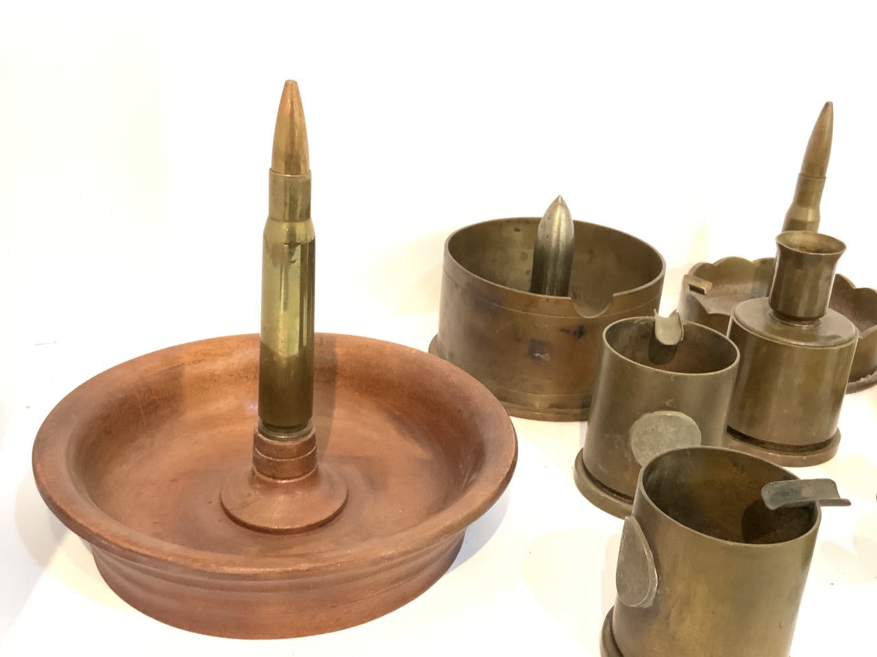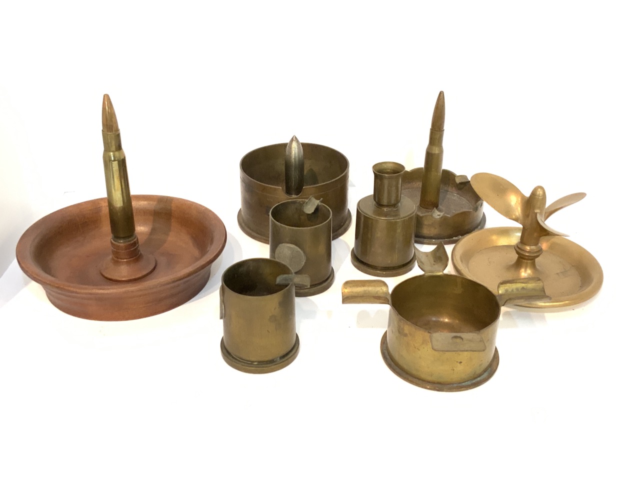 A compiled grouping of trench art. Eight pieces total.