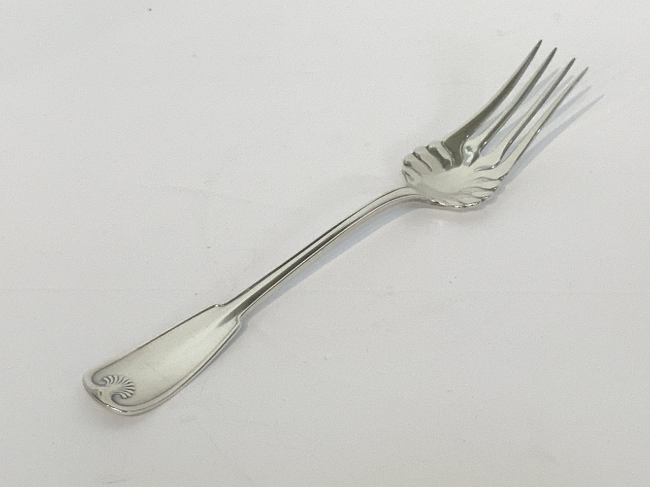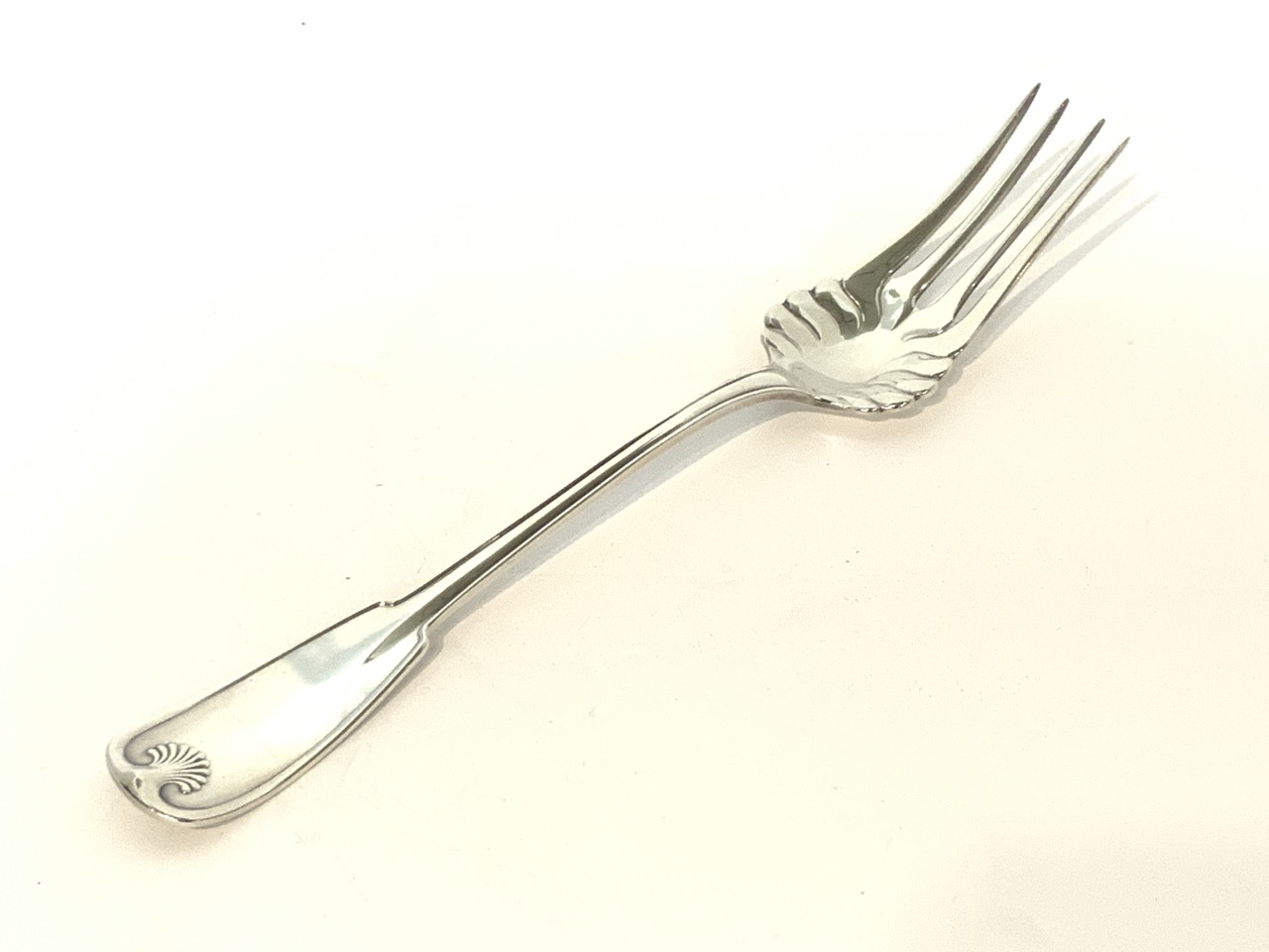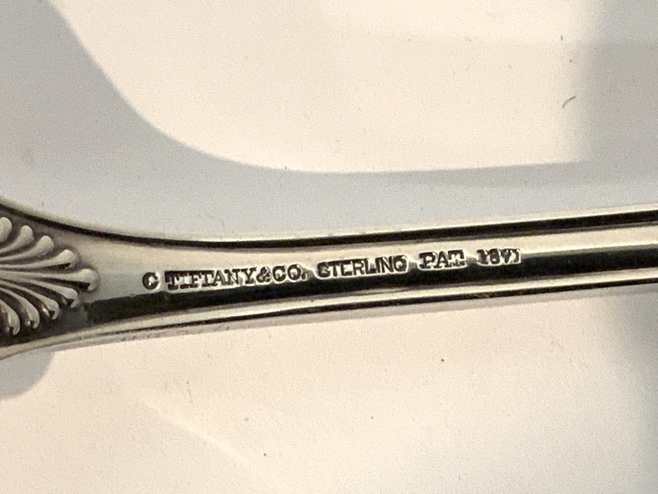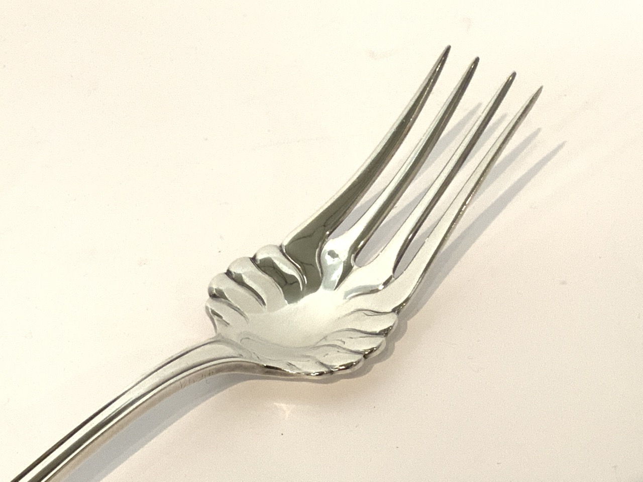 Tiffany & Co. palm pattern sterling silver four prong serving fork.