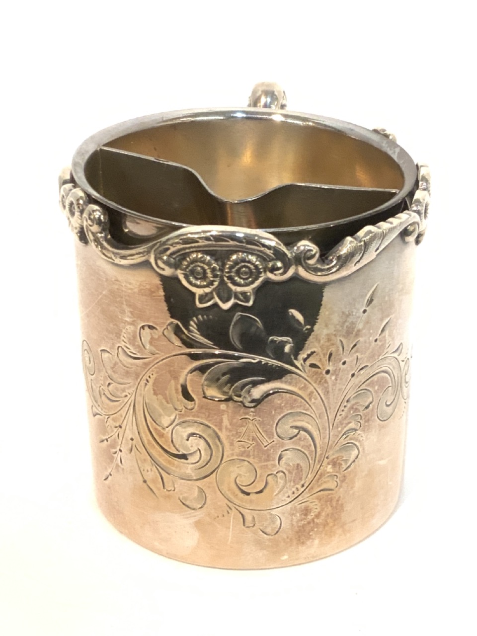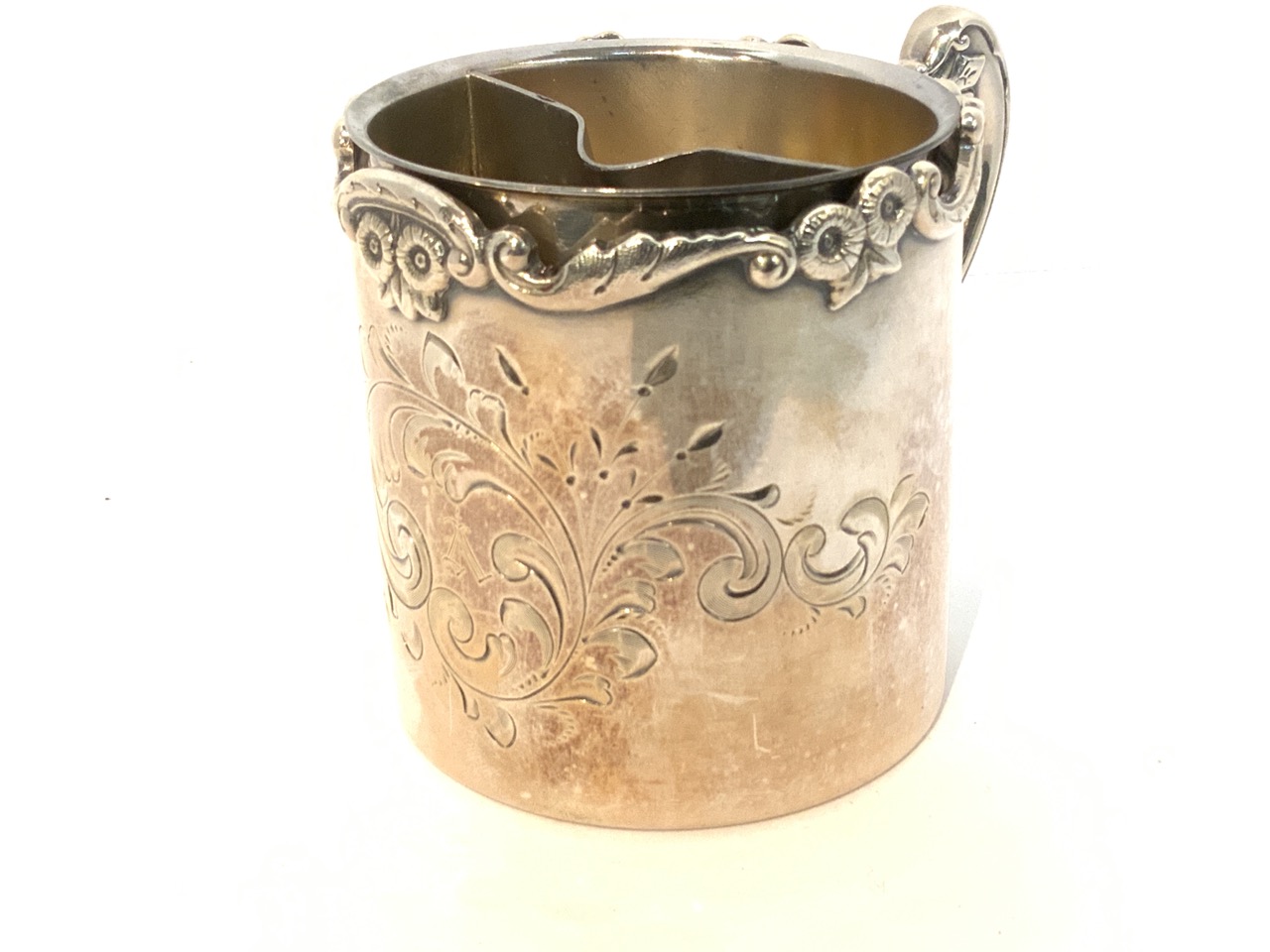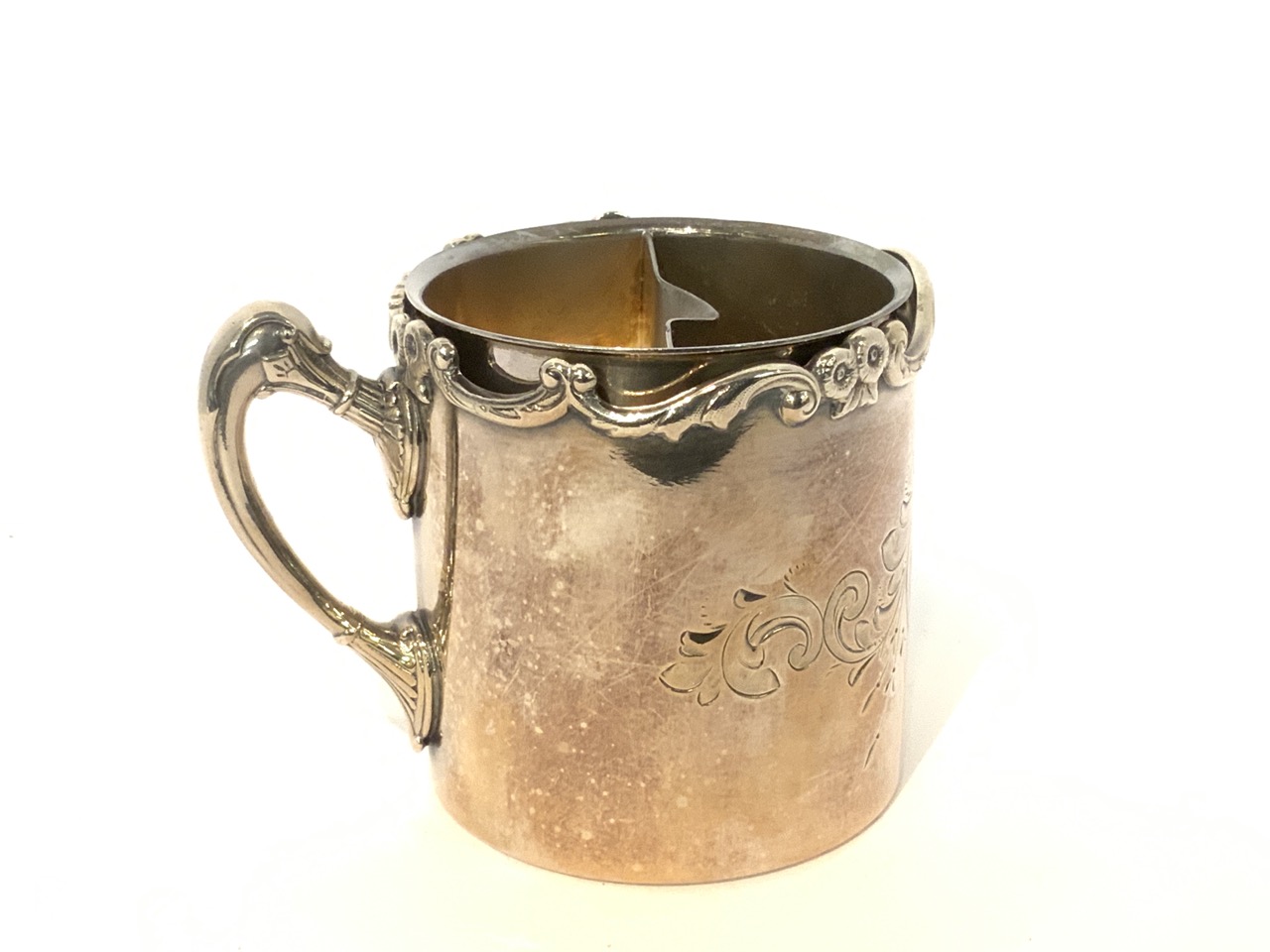 Victorian Era Fancy Hartford Silverplated mustache cup.