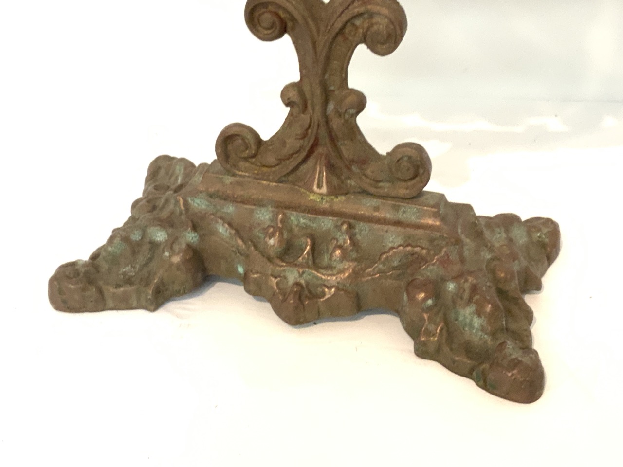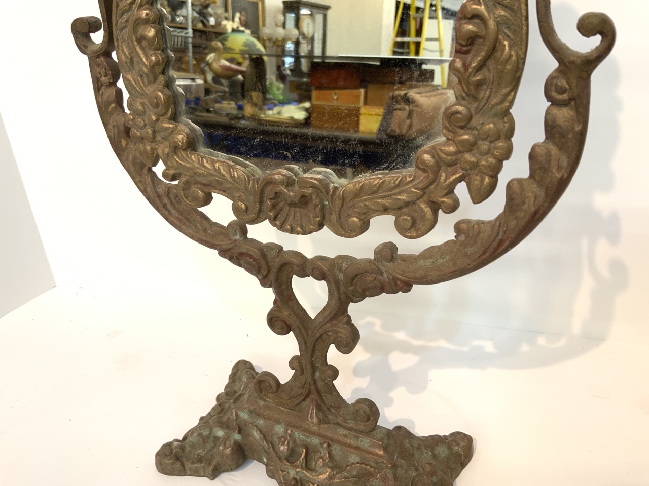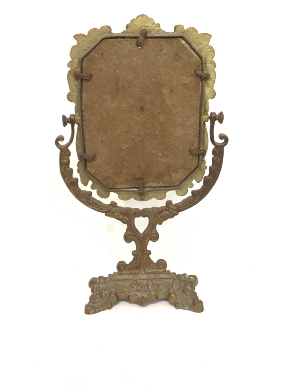 Victorian brass table top harp mirror.