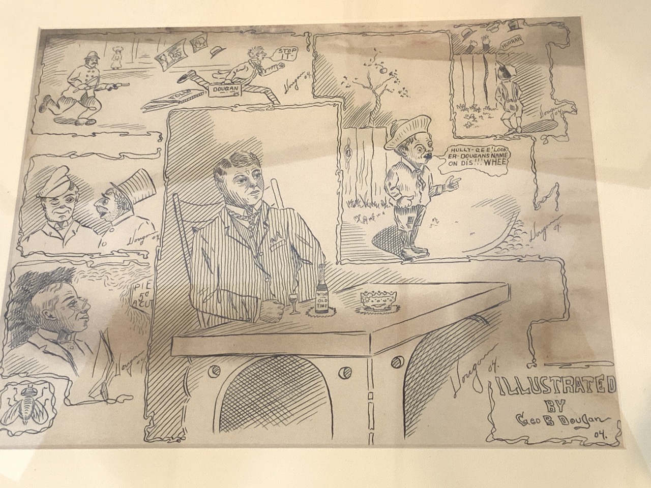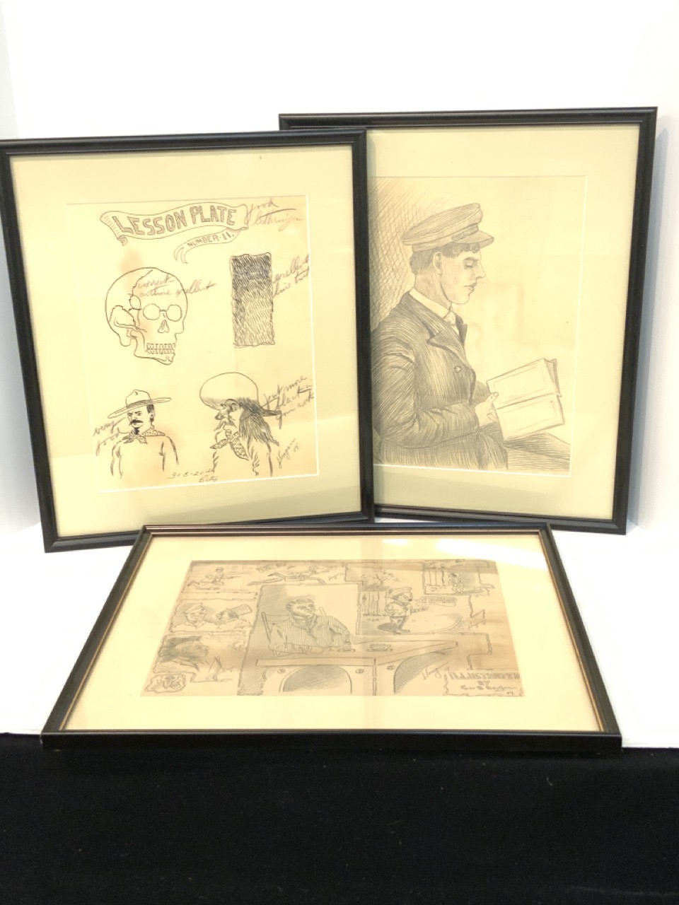 Three (3) George B. Dougan original pen in ink drawings. c. 1904-1905