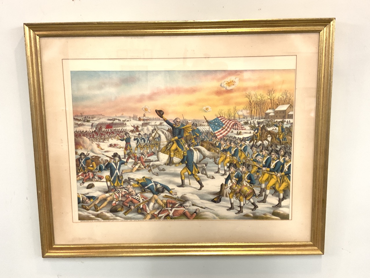 Washington's Charge, January 3,1777. Battle Of Princeton. Housed in a gold gilt frame.