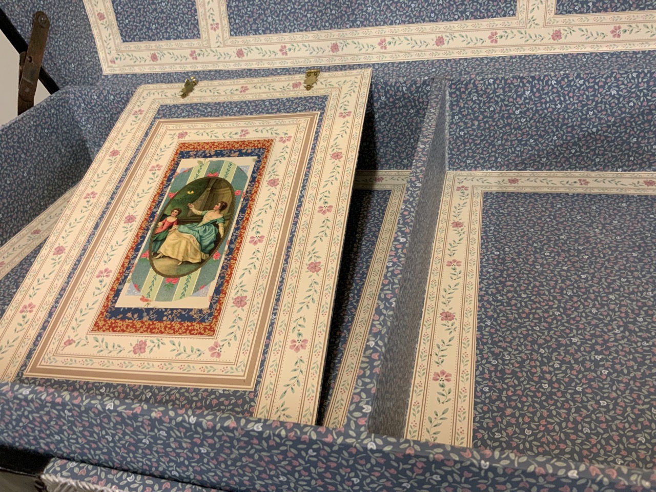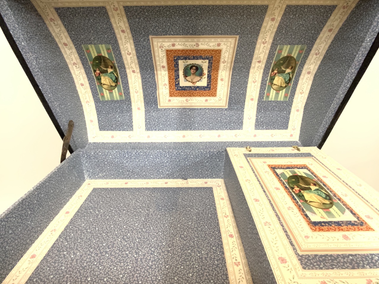 A large Victorian steamer trunk. Restored with new liner and prints. Very nice piece, ready to use.