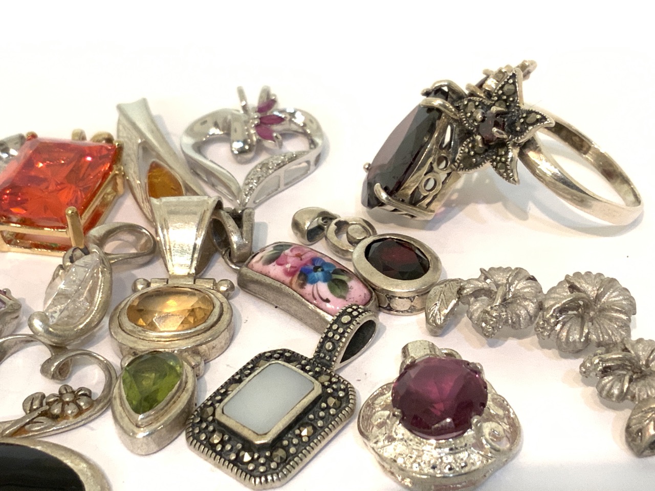 Sterling Silver Gemstone Pendants Group Lot.