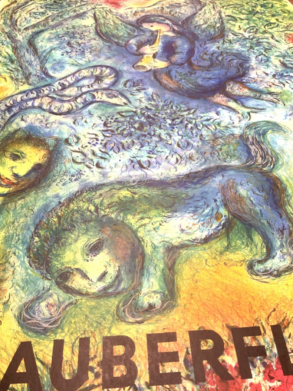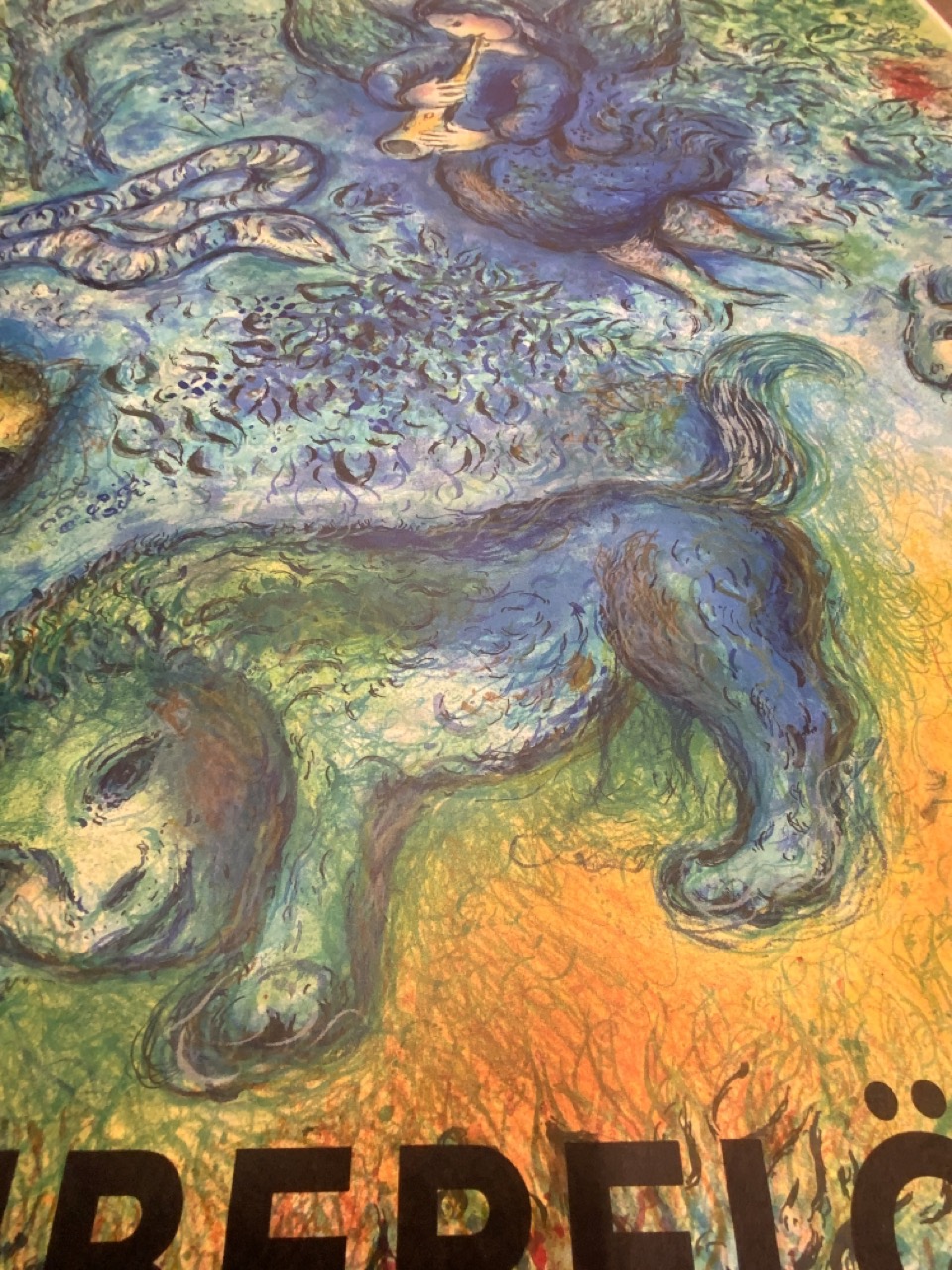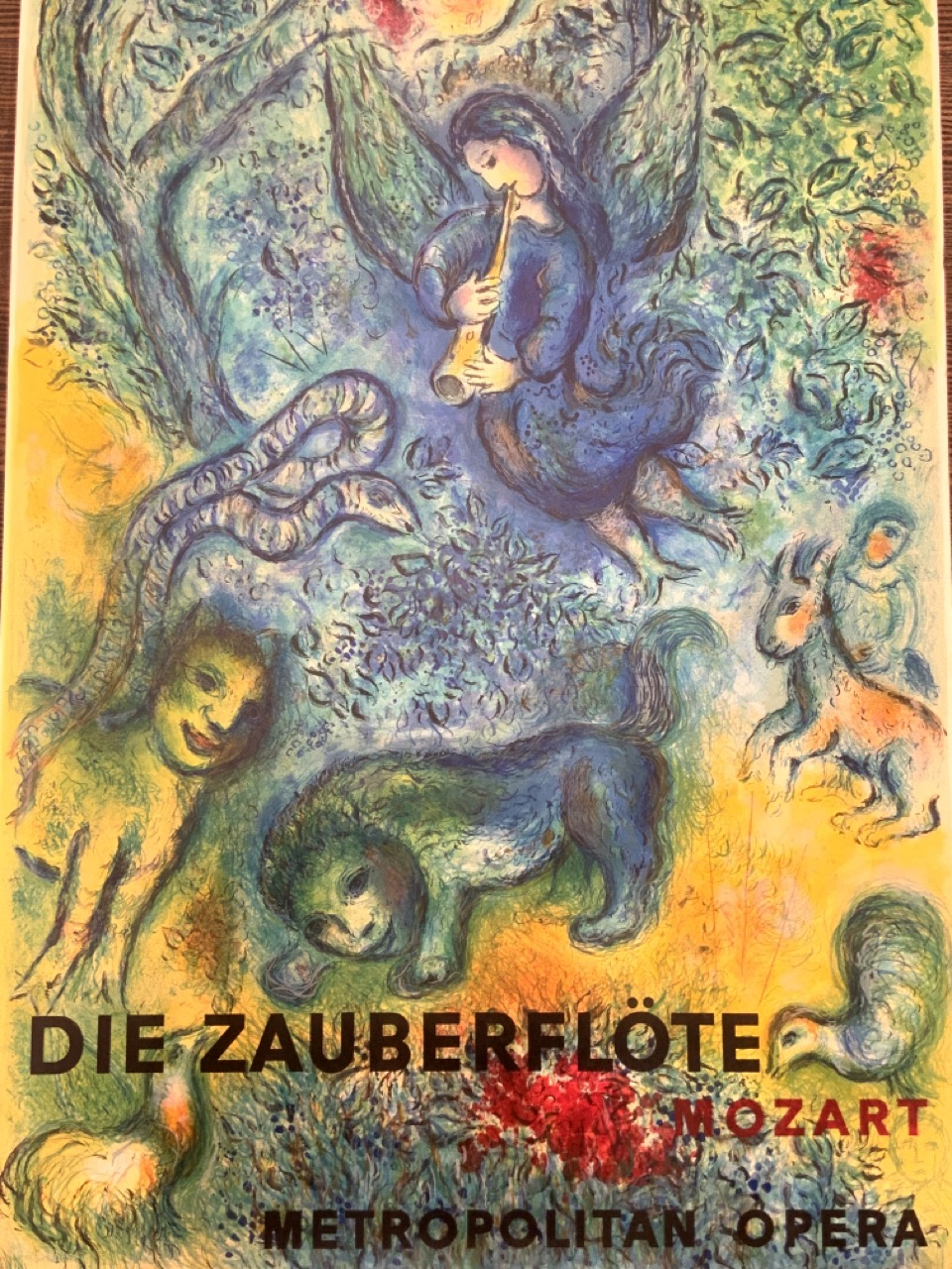 1966 edition of The Magic Flute (Die Zauberflote) Unframed. Pristine image color, no fading. Some edge foxing spots along matte border on right side. Mourlot, Made In France.