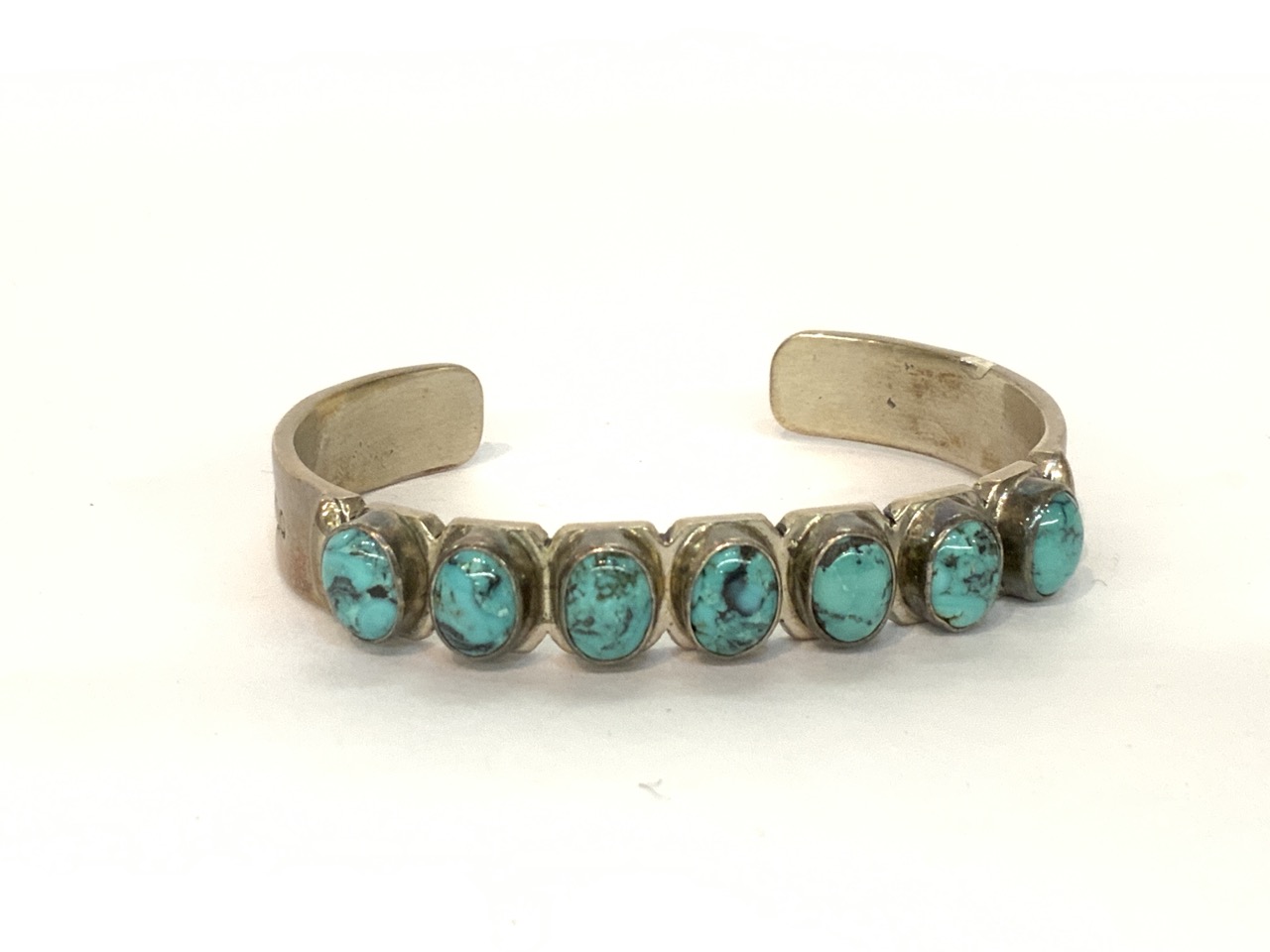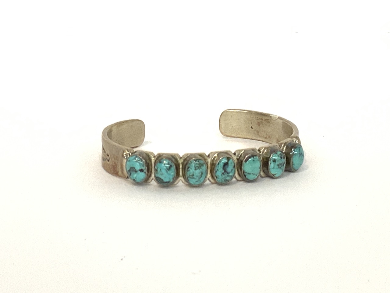 Sterling silver turquoise Indian bracelet signed R. Tom.
