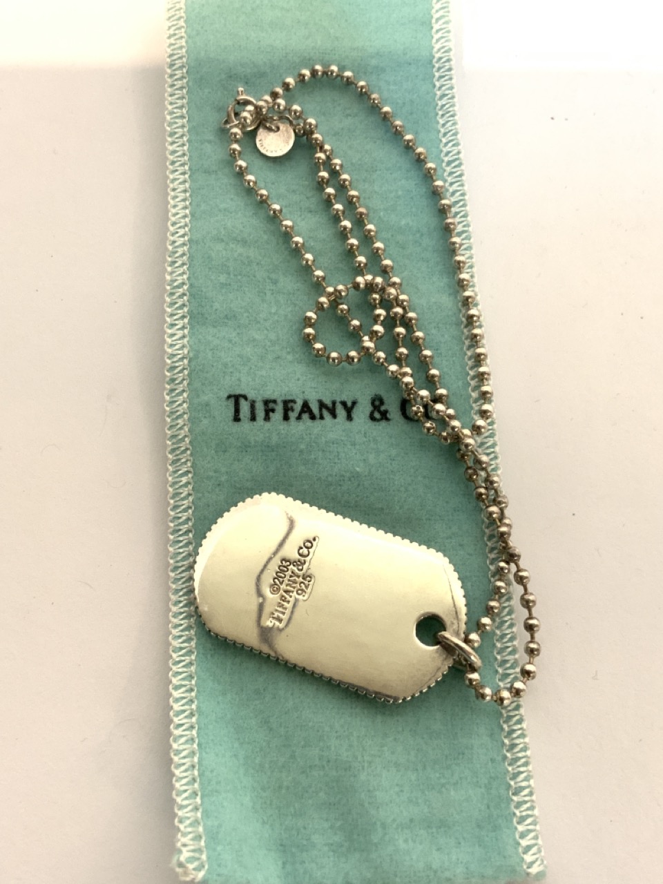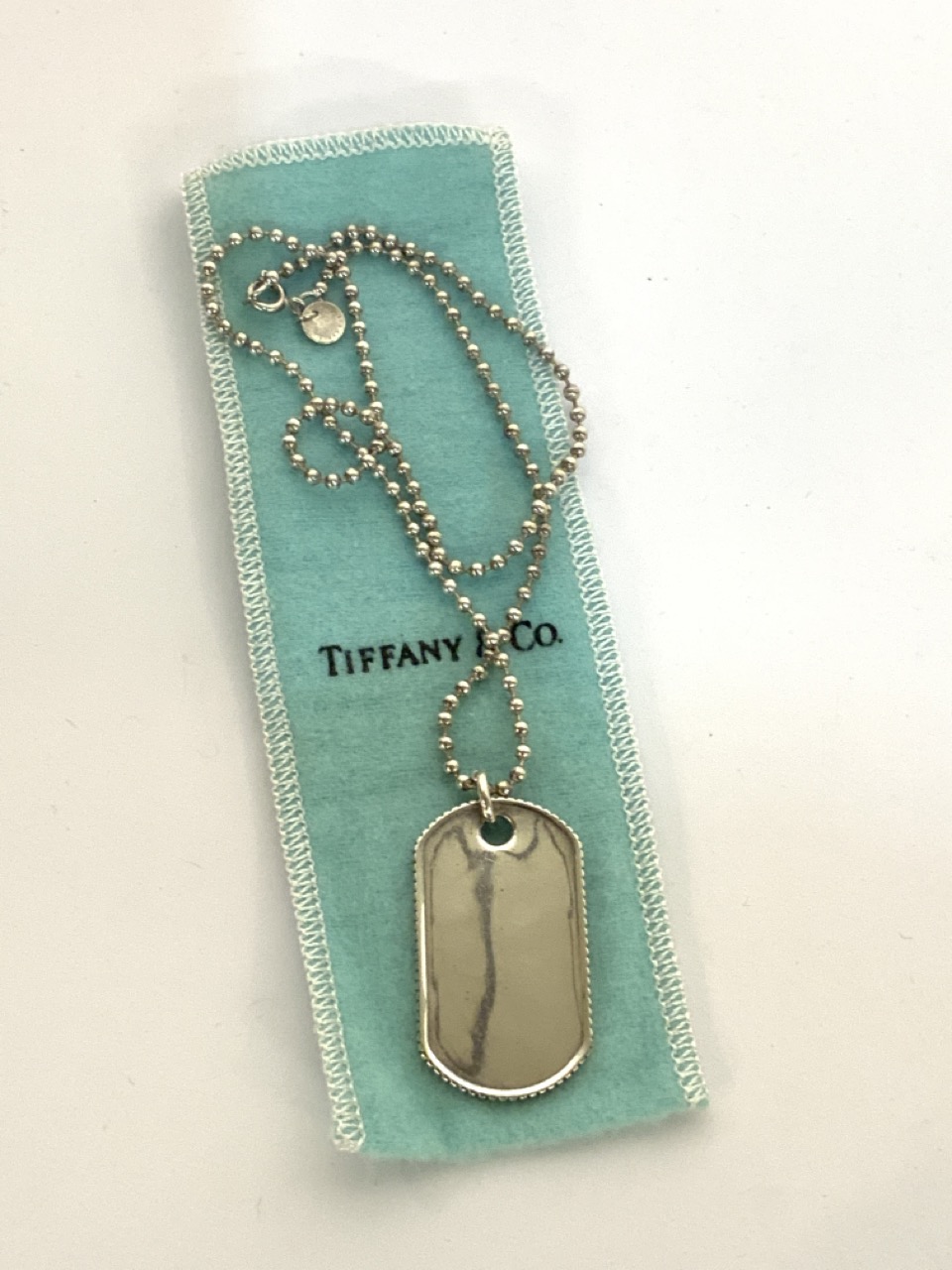 c. 2003 Tiffany & Co. Dog Tag Style Necklace. Sterling Silver with ball chain.