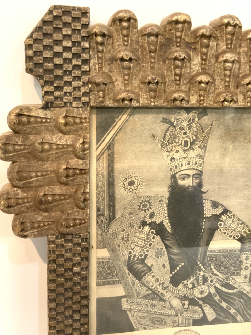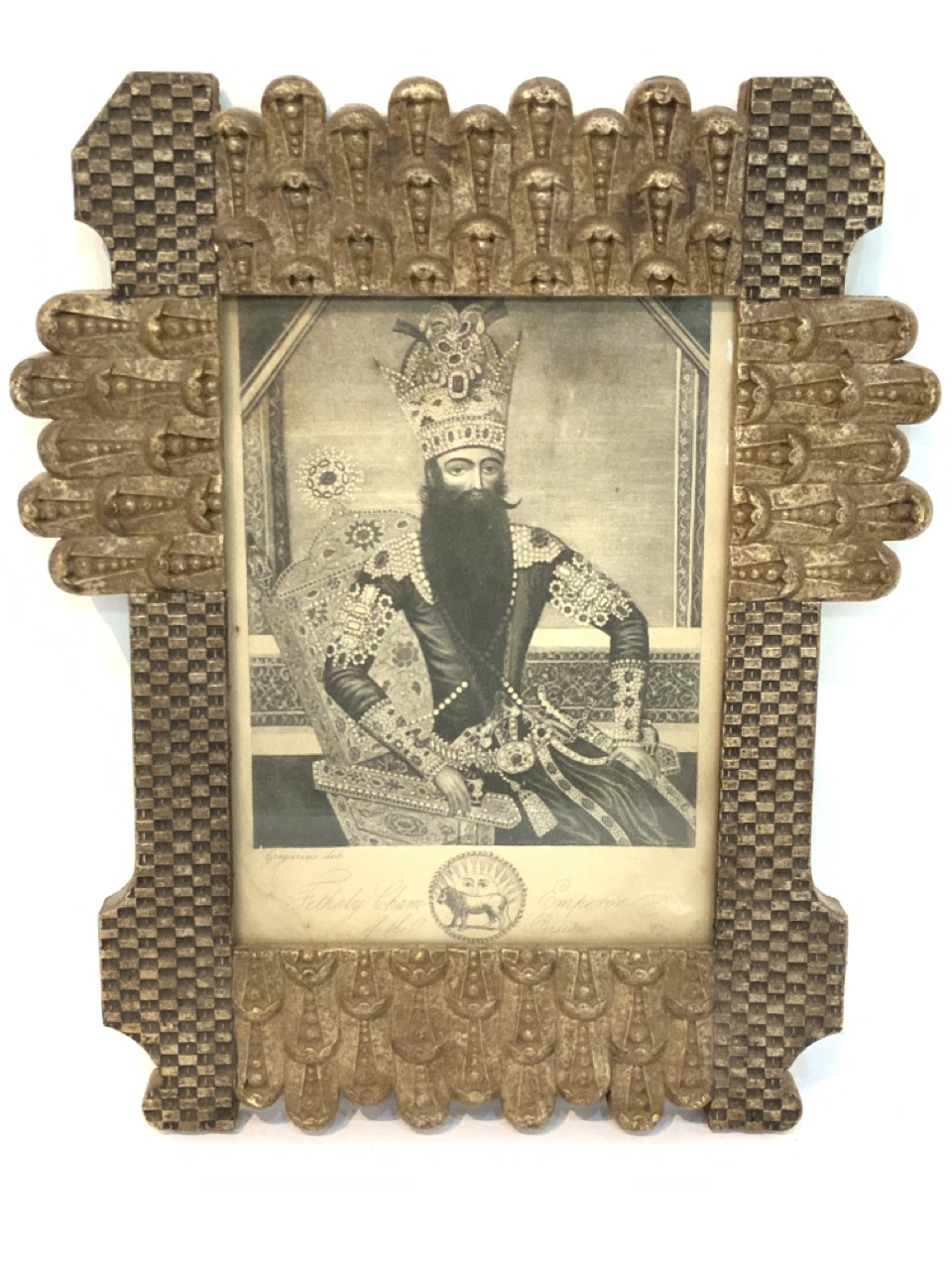 Housed in an ornate Persian wood frame.