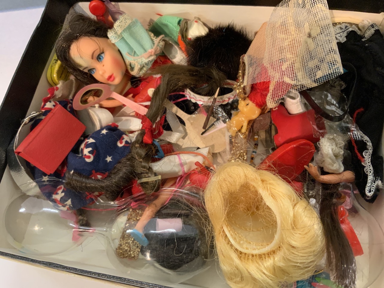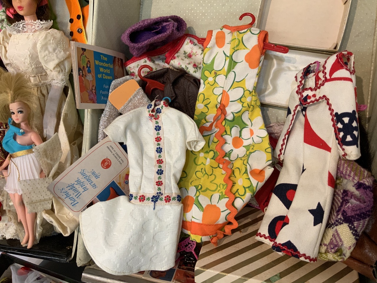 Vintage 60's and 70's Barbie and Dawn dolls. Case with contents from original owner. Outfits and accessories seem to be of most importance. Please see photograph preview or call.