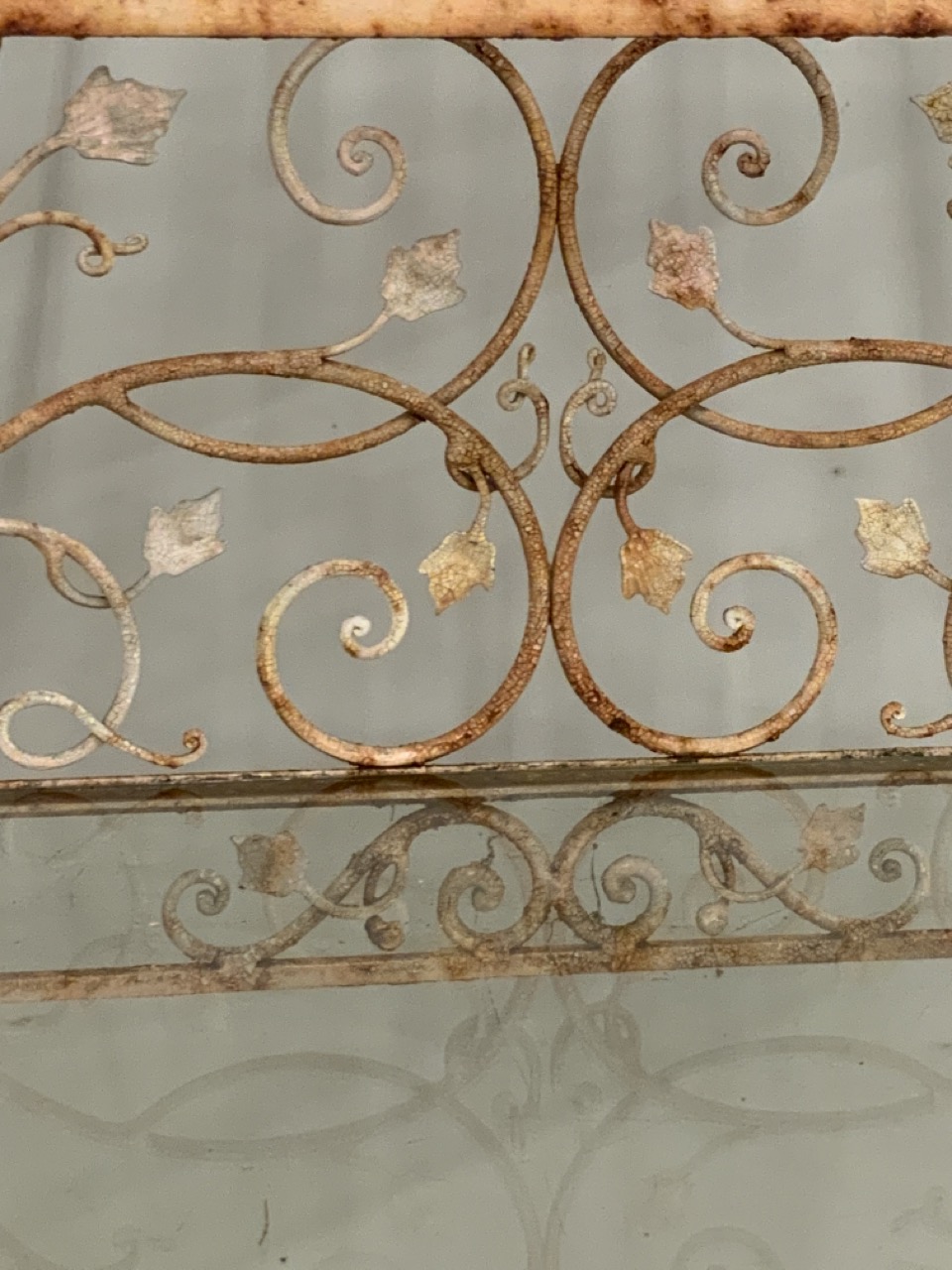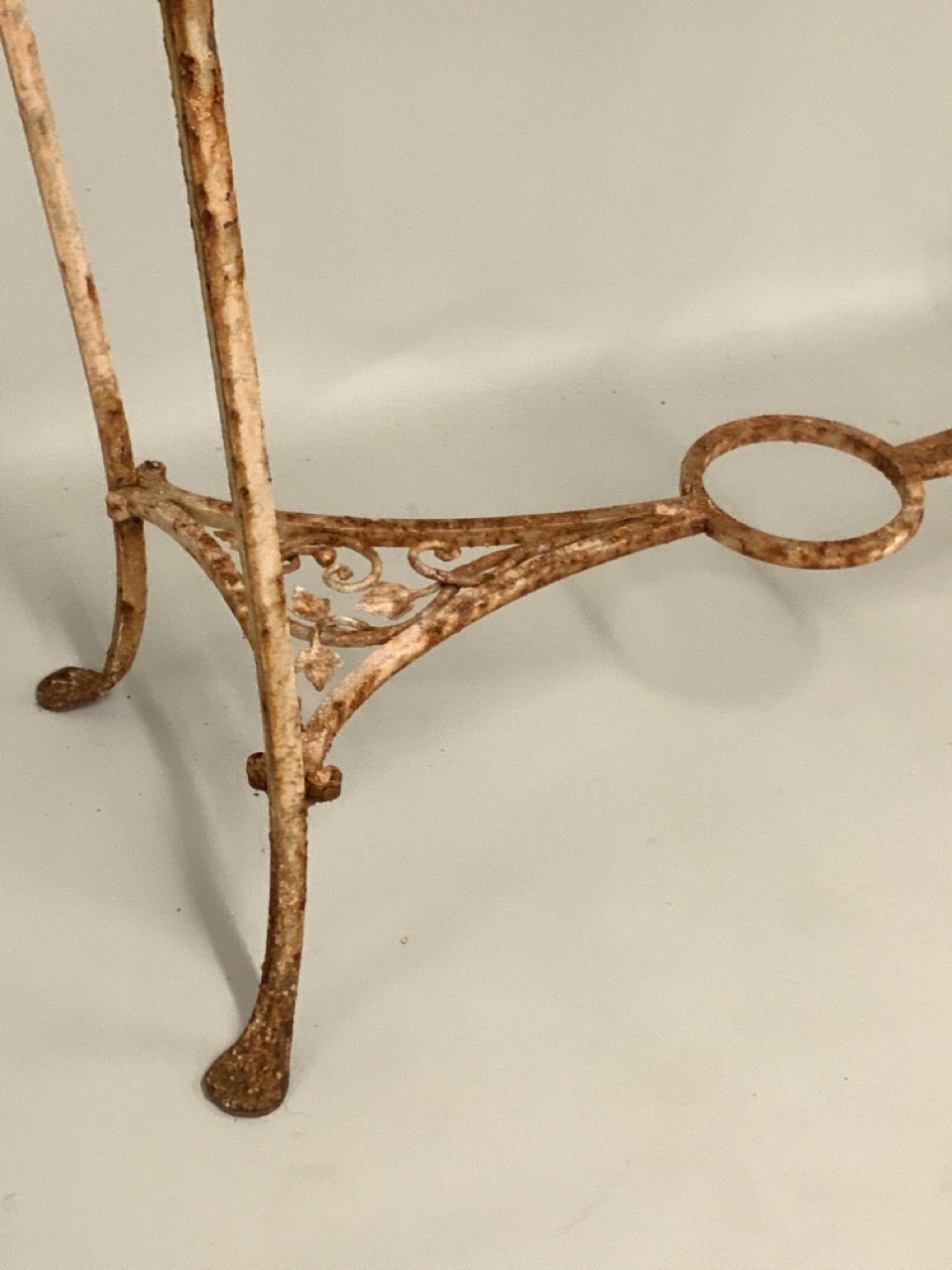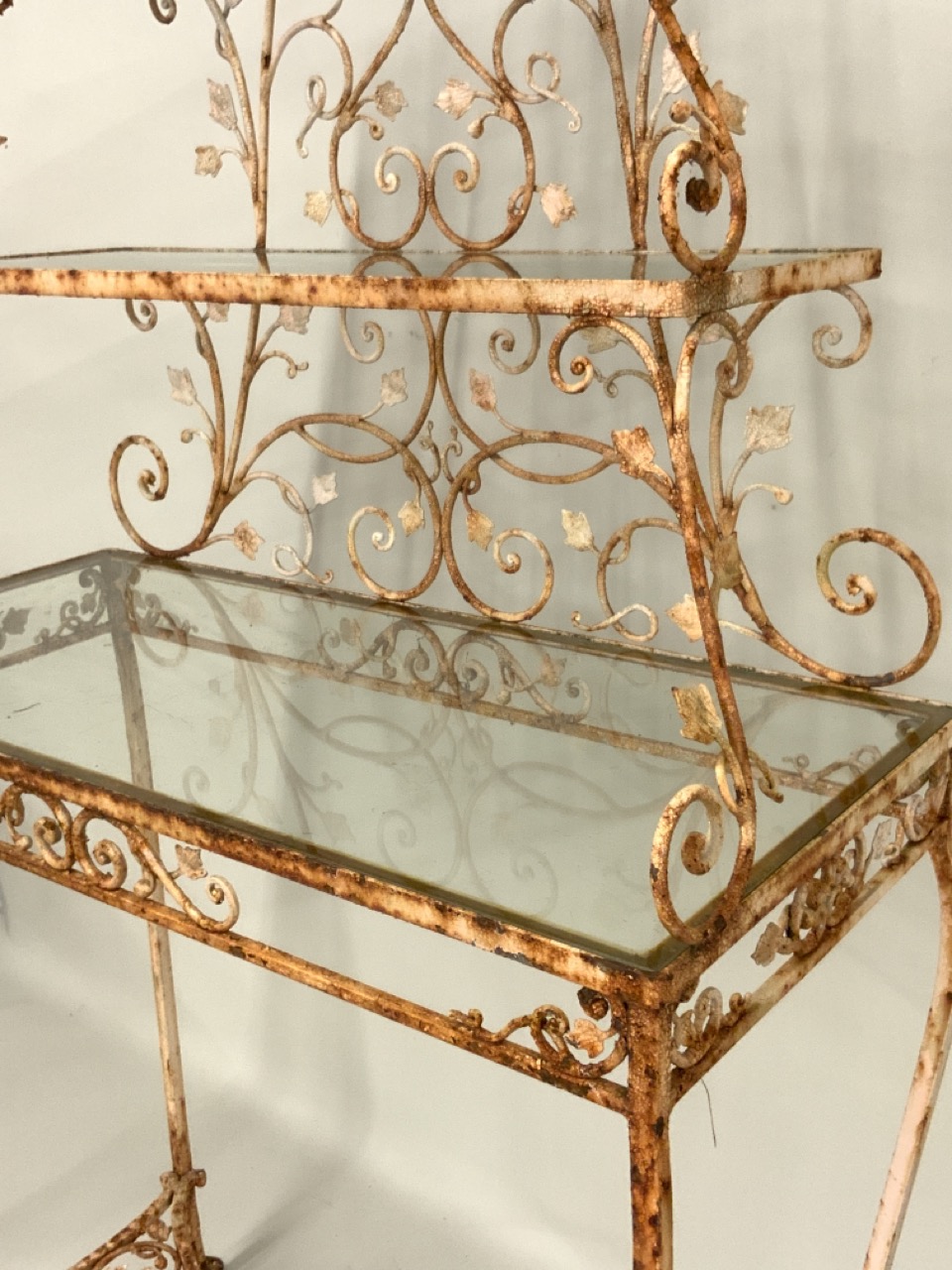Three (3) tier antique iron three tiere server used as garden plant stand.