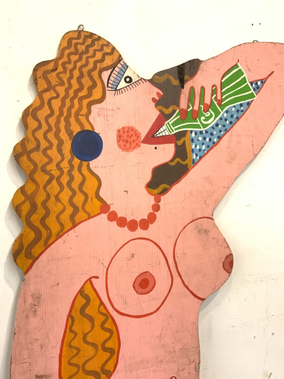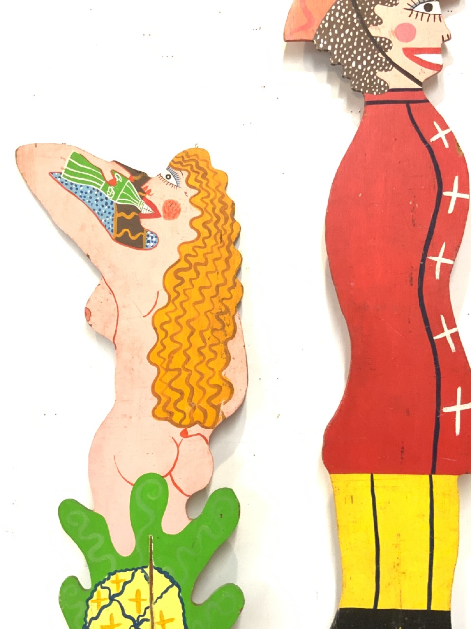 Two piece play stage art props. Double sided oil painted on wood boards. c.1960's