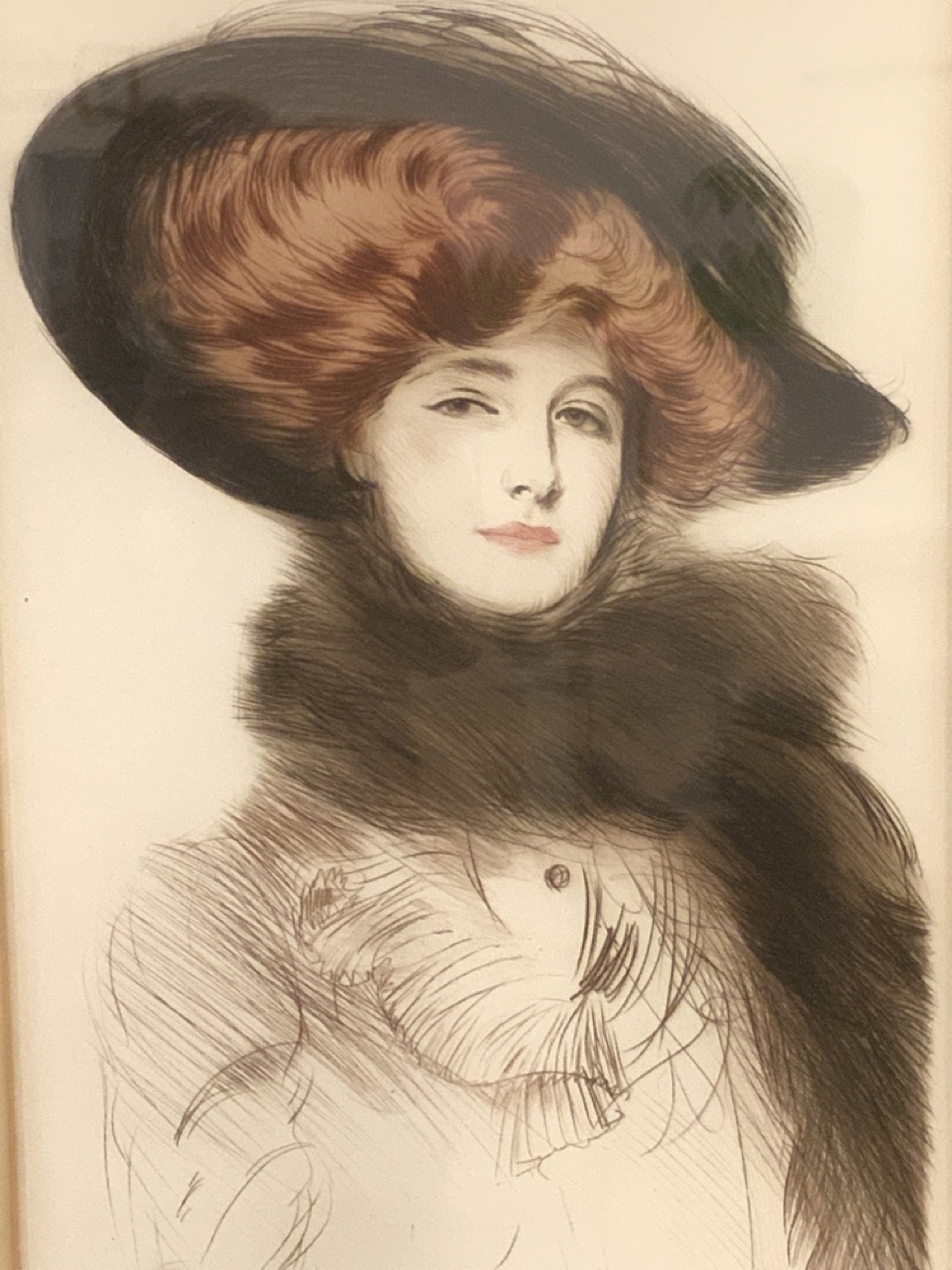 Portrait Of A Lady with Red Hair, Hat And Scarf