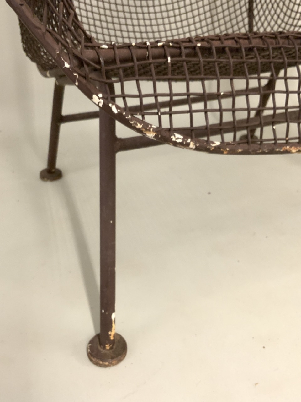 Russell Woodard mesh chair with brown paint. Good condition.