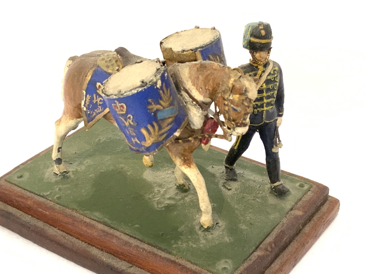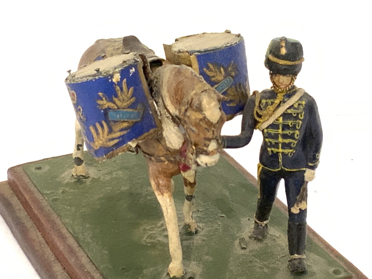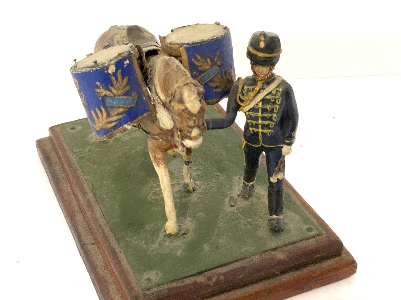 A finely crafted by hand soldier model with horse drawn drums.