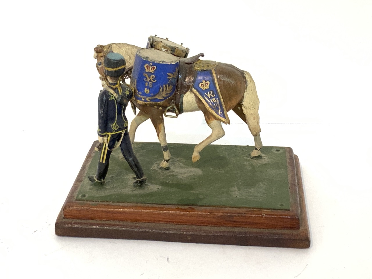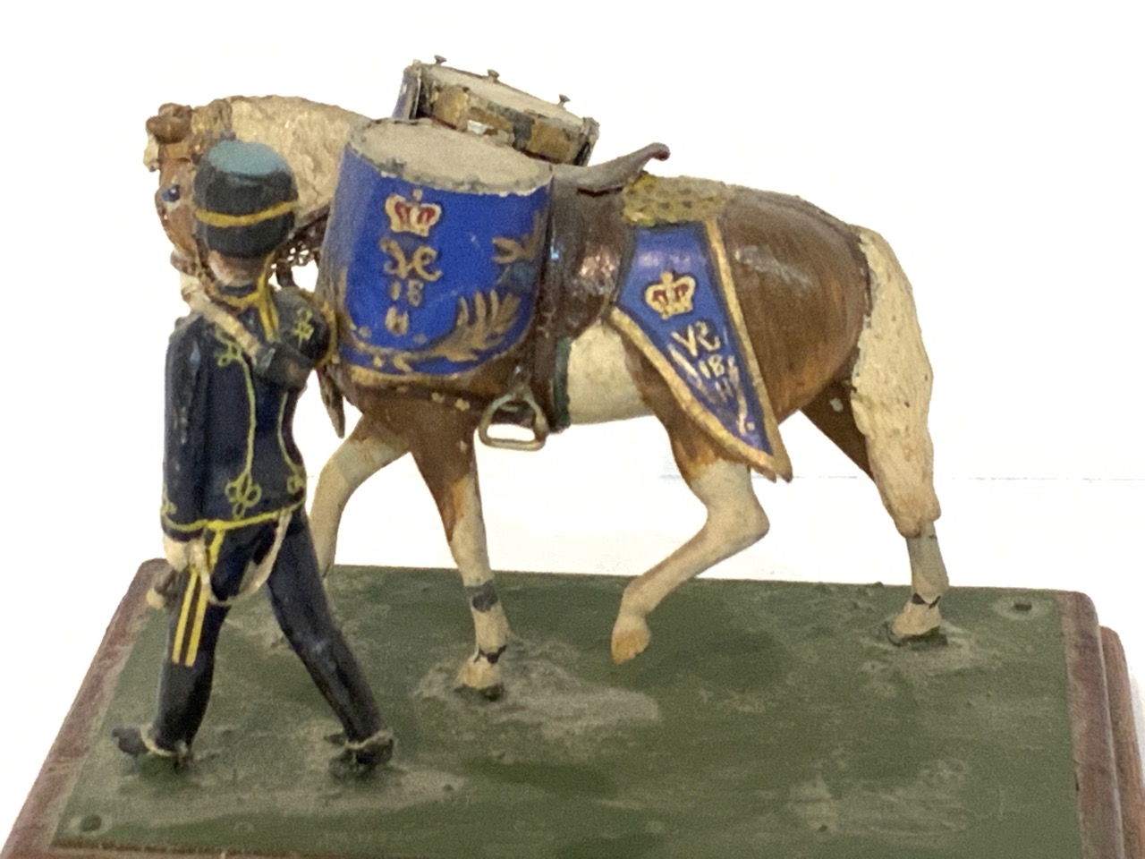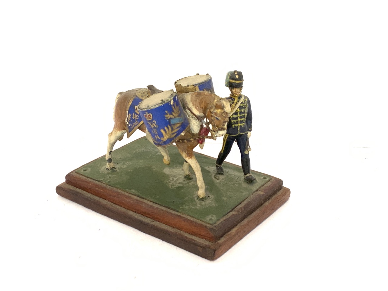 A finely crafted by hand soldier model with horse drawn drums.